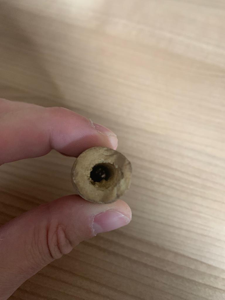 Met vuursteen pijpje bedoel ik een holle graafgang in vuursteen. Kijk maar eens naar deze link voor de vragen over de vuursteen. Het is alleen niet goed zichtbaar op de foto of het dat is. Maak eens een foto van de doorsnede en dat gaatje?