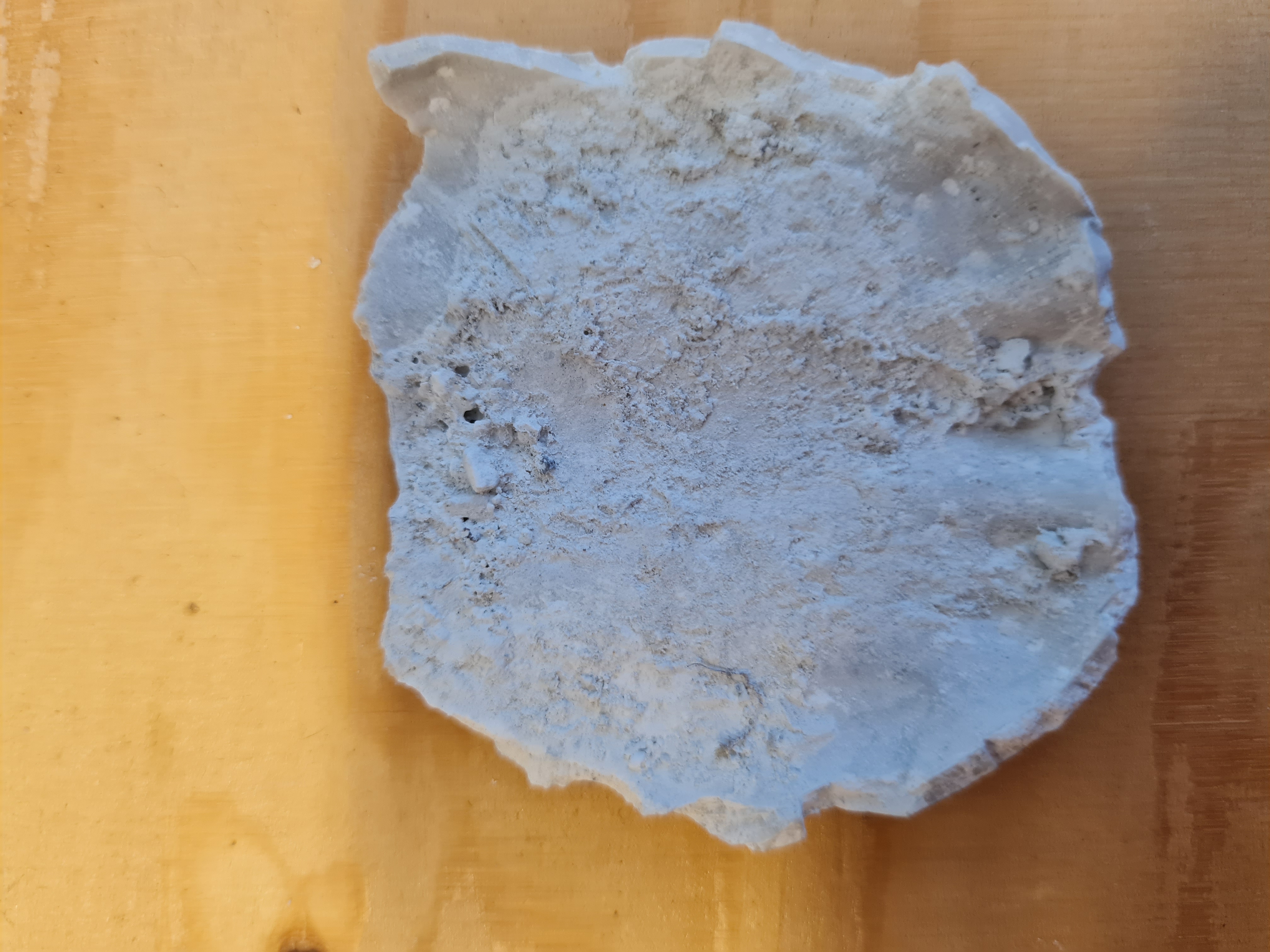 Ik heb dit (fossiel?) 4 jaar geleden gevonden in Denemarken, alleen nooit geweten wat het is, ook weet ik niet meer waar ik het precies heb gevonden in Denemarken. Het is een soort krijt steen dat heel erg loslaat op je handen.