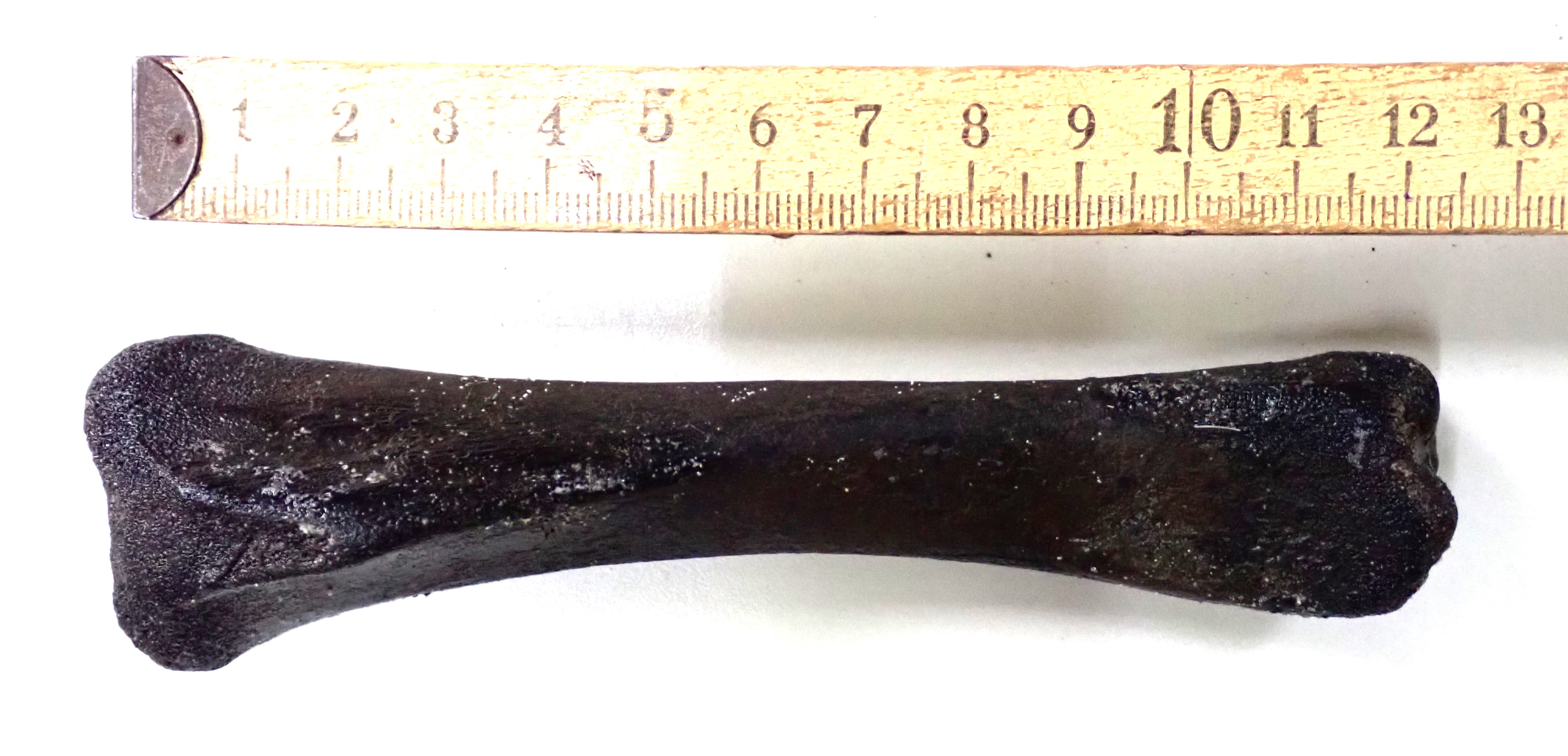 Het lijkt mij gelet op de vorm een scheenbeen. Het was een jong dier omdat het gewricht nog niet gefuseerd was. Ik weet niet zeker of het varken is of niet.