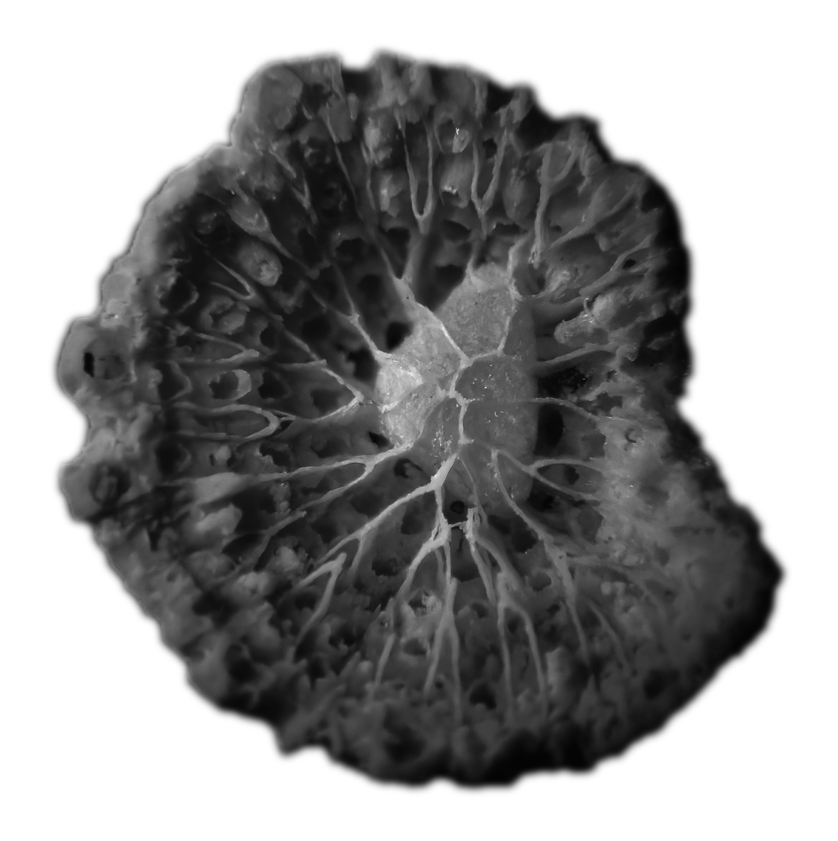 Luc, jouw gok was niet slecht: De soorten uit het bryozoa-geslacht Lunulites vormden, vrij in het water bewegende munt- of koepelvormige kolonies, die zich vaak echter vasthechtten op kleine steentjes, schelpen of dergelijke. Soms zijn deze ondergronden (substraten) op de onderzijde van het fossiel bewaard gebleven (zie bijgevoegde foto). Dan lijkt het inderdaad een beetje op de foto van deze quiz.