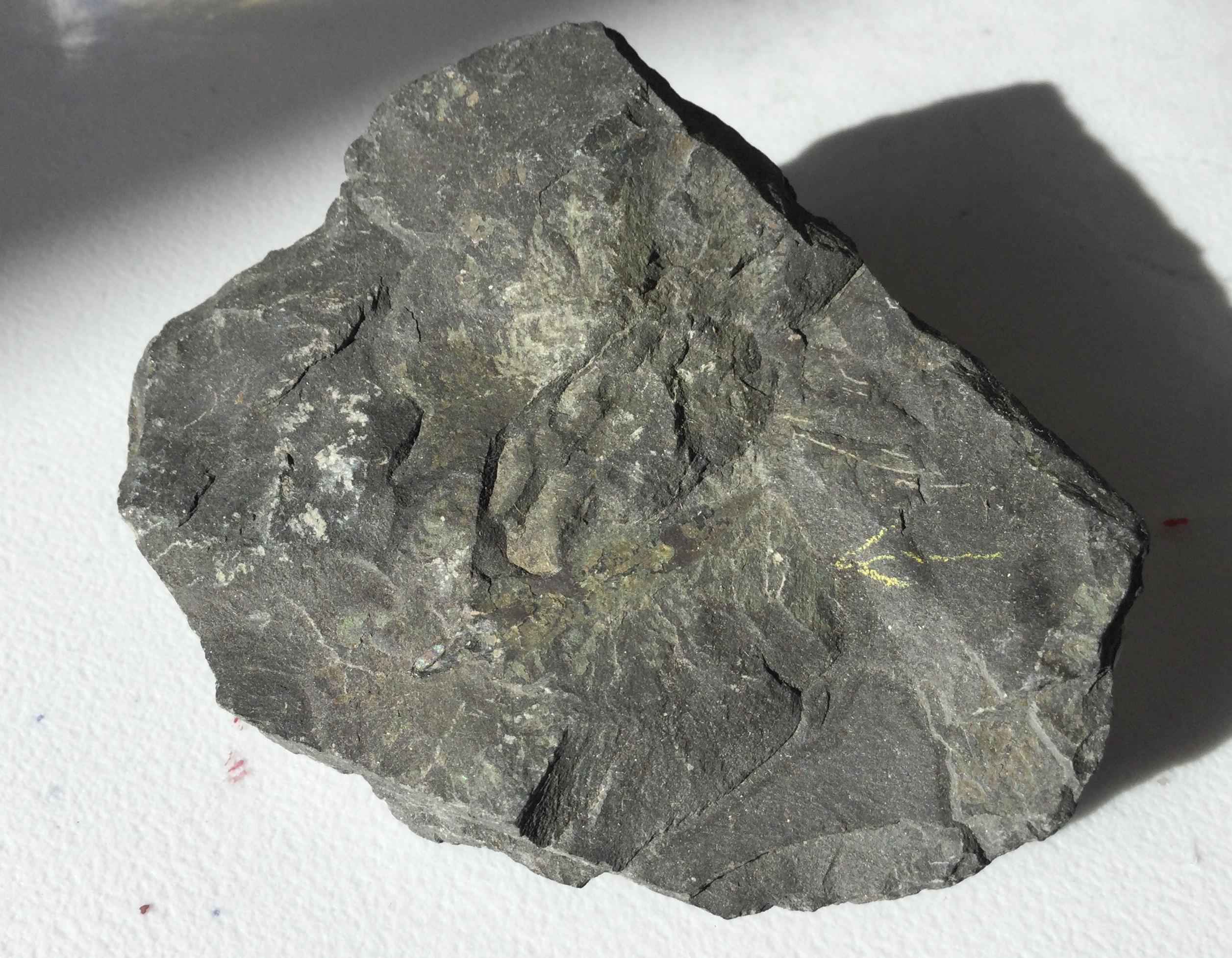 Het kan een speling van het oog zijn, maar volgens mij gaat het om de overblijfselen van een lancetvormig blad...