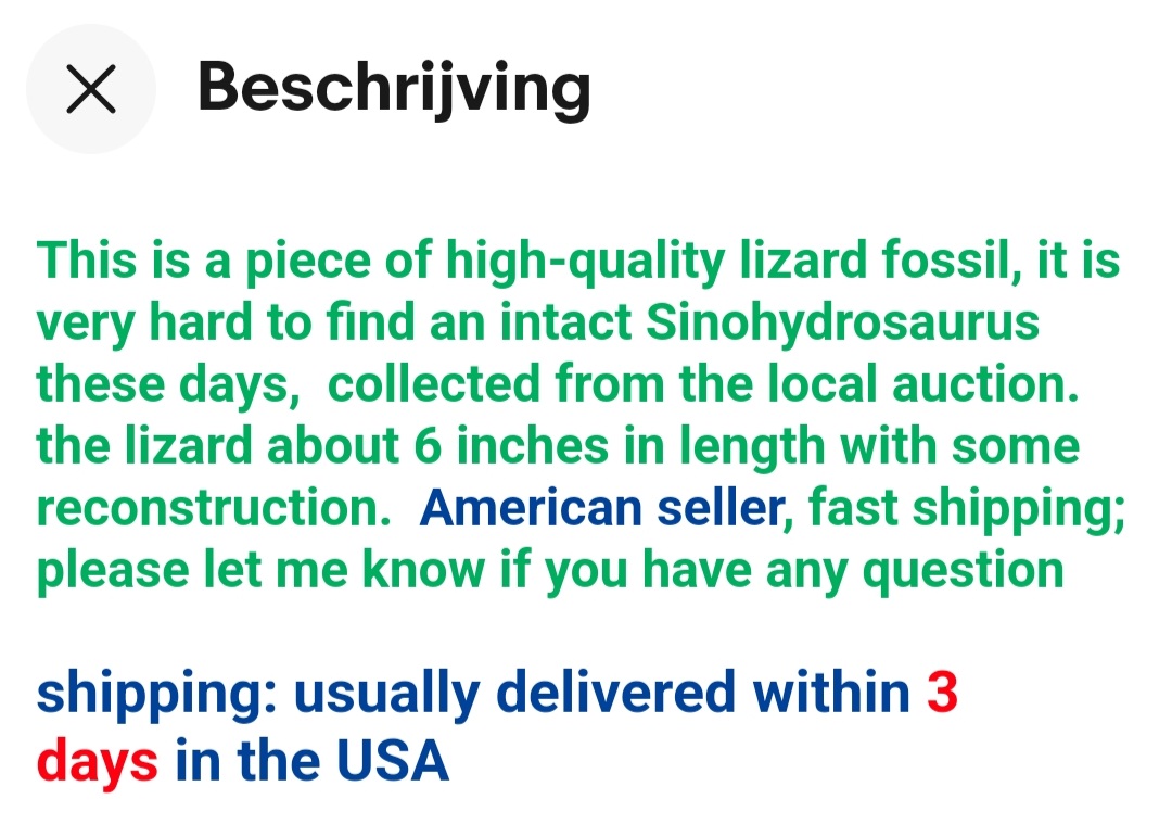 Tja, caveat emptor; dat wisten de Romeinen al en ook in het huidige internettijdperk is het verstandig om goed onderzoek te doen alvorens iets te kopen. Hoewel sommige vervalsingen zo lachwekkend slecht zijn dat het komisch is, worden "goede" vervalsingen steeds beter en lastiger als zodanig te herkennen (en dat is minder om te lachen...) Hier op Paleontica staat een best leuk en informatief stukje over vervalsingen en waar je op kunt letten om ze te herkennen.