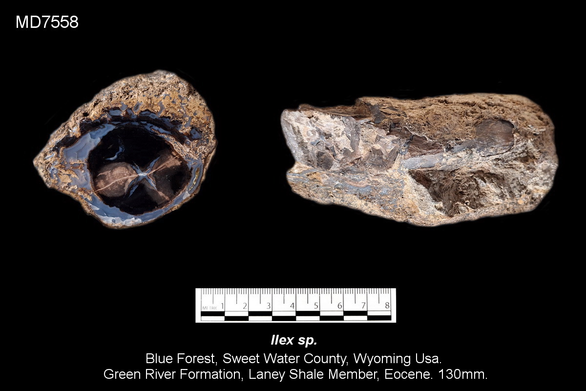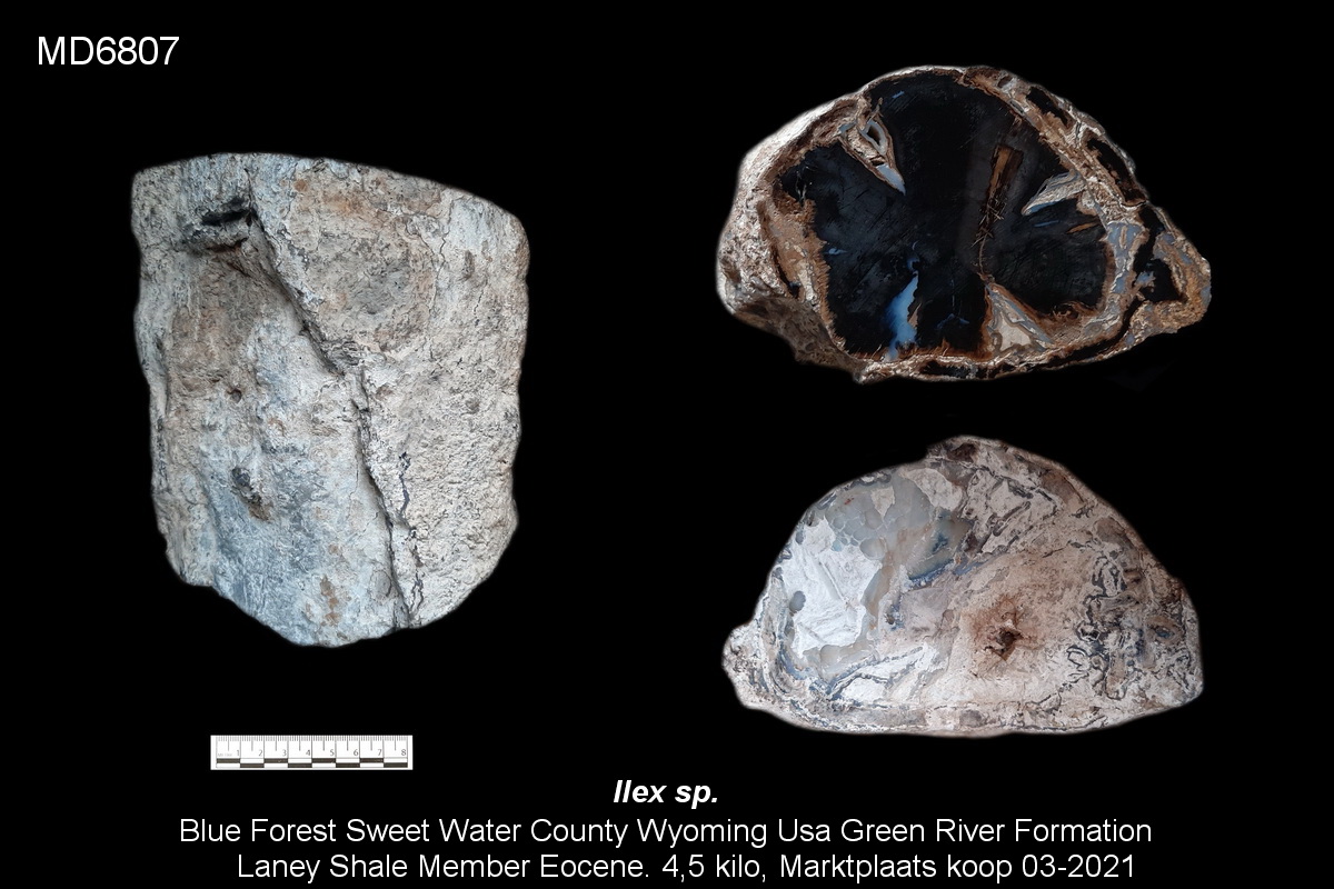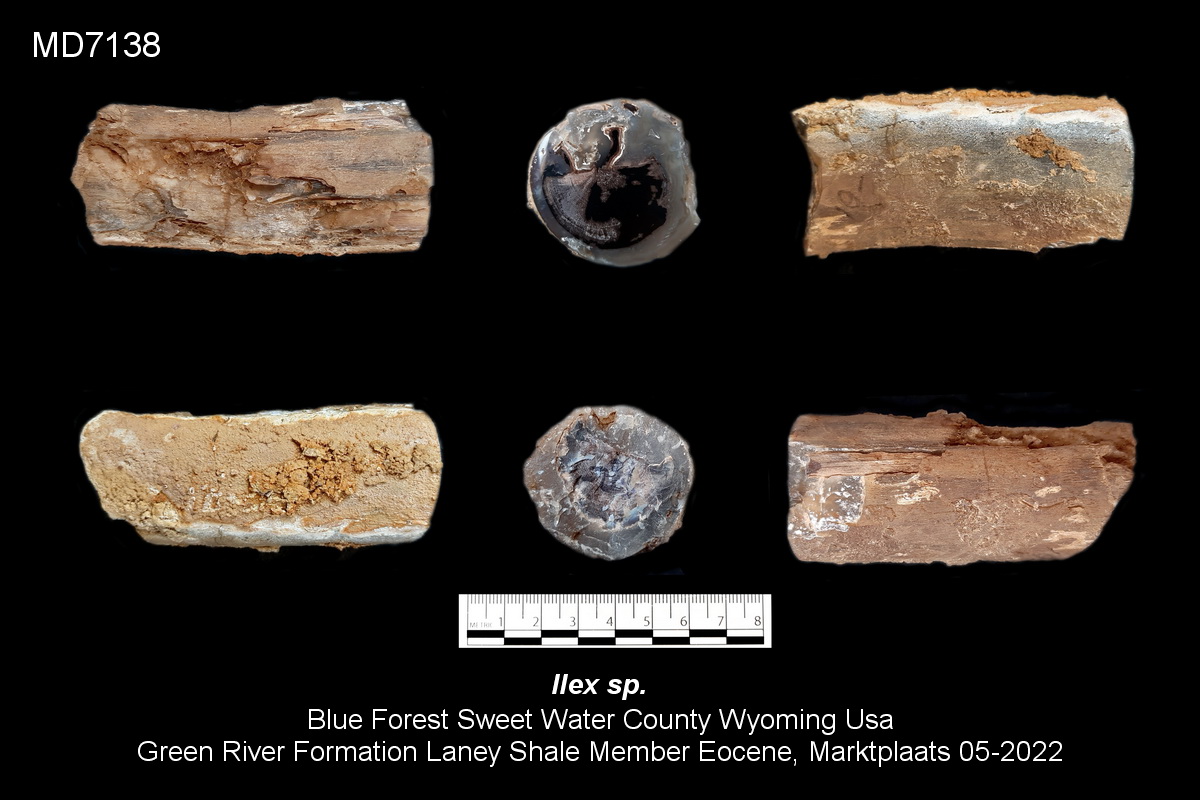 Hoi Mart - Prachtig materiaal uit het Blue Forest. Leuk om te zien dat je ook een paar stukken hebt waarin de honinggele calciet nog aanwezig is; deze wordt vaak met zuur verwijderd om de blauwe botryoïdale chalcedoon beter zichtbaar te maken. Helaas heb ik zelf geen noemenswaardig Blue Forest-materiaal om aan deze draad toe te voegen... Daarom maak ik maar een zijstapje met wat fossiel hout uit het Mioceen van Megyaszó, Hongarije.
