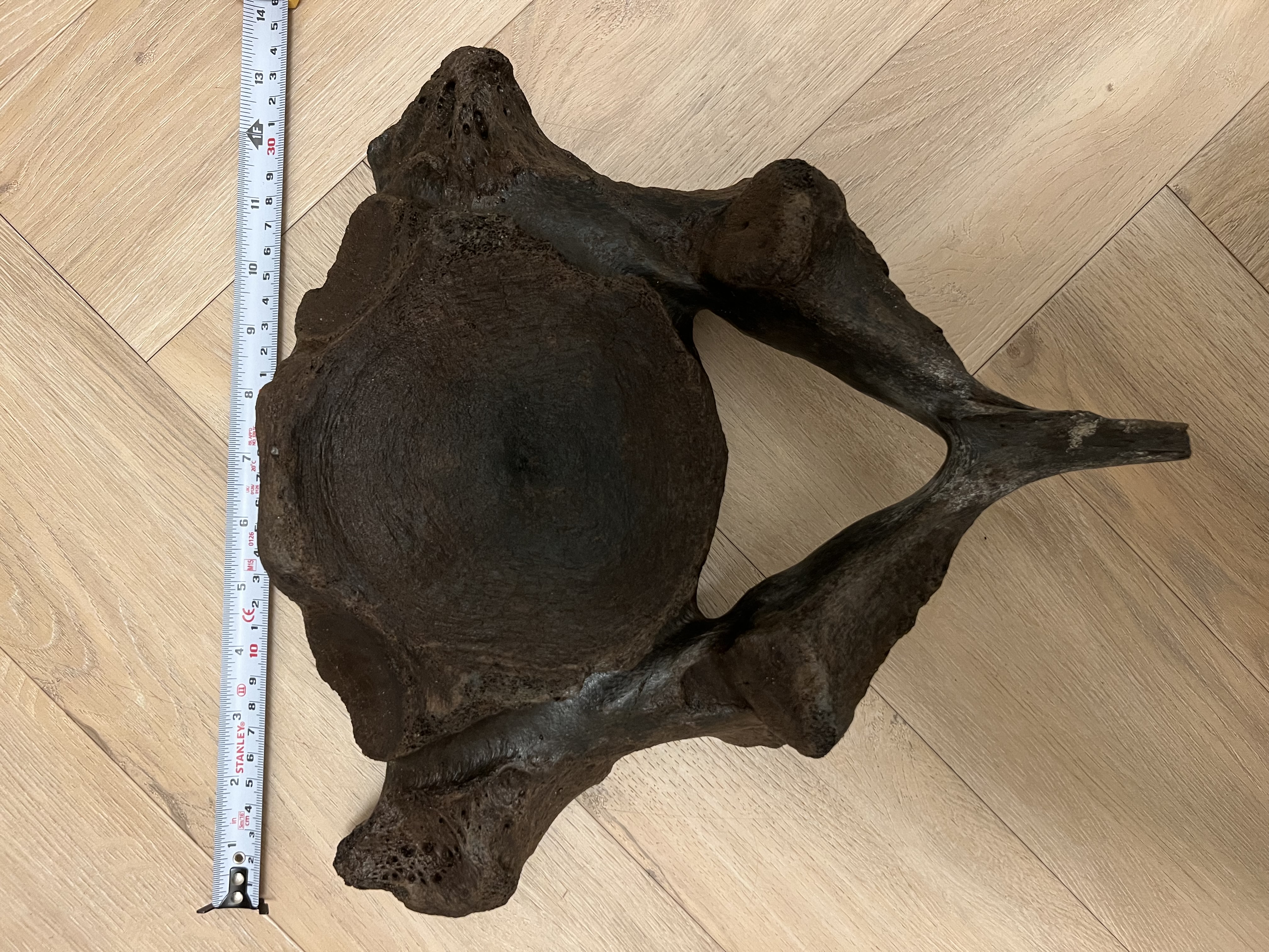 Zeker een mooie wervel van en mammoet! Deze is, gezien de platheid, van de nek (cervicale vertebra).
