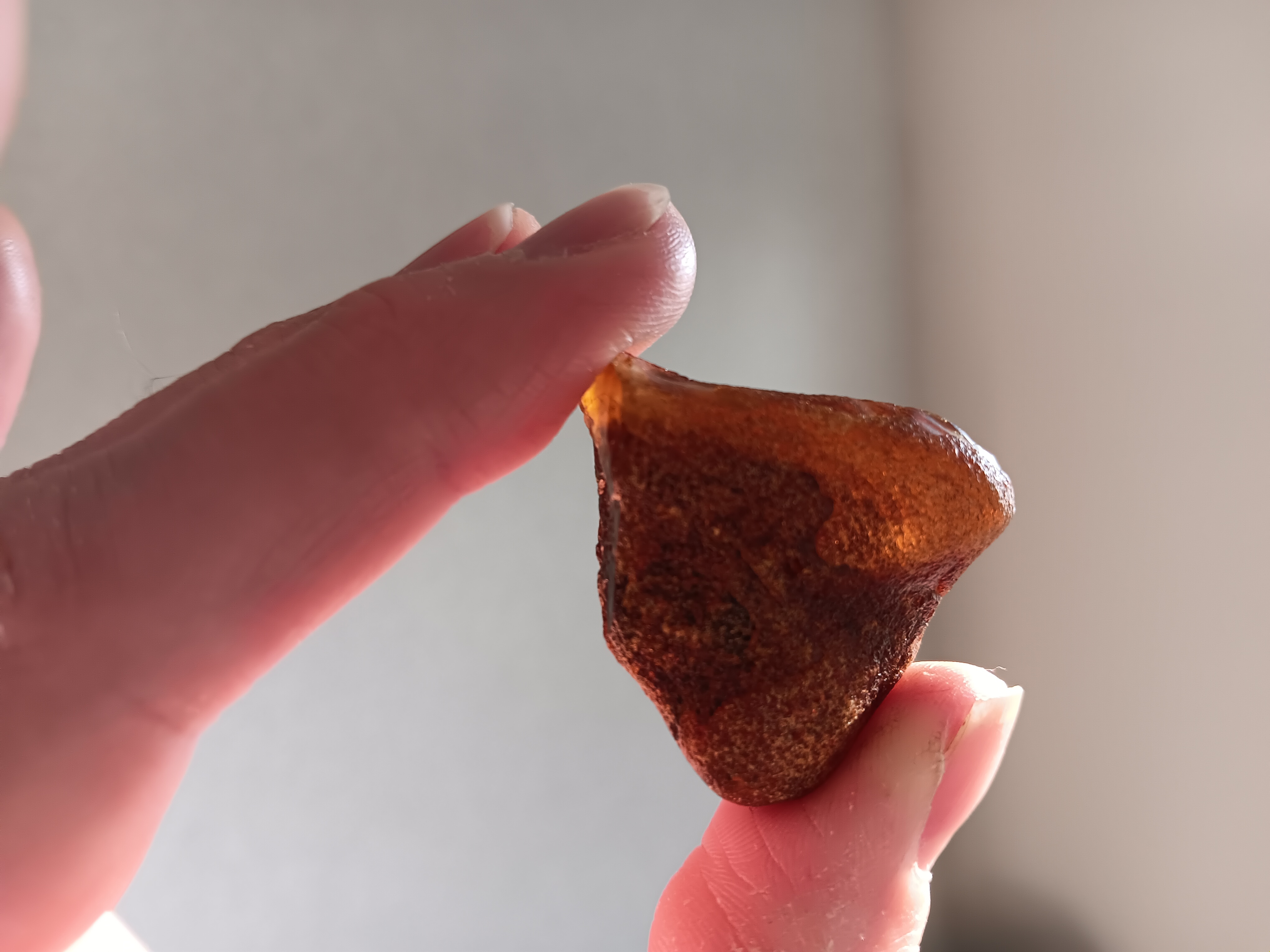 Het is moeilijk te zien maar ik geloof graag dat het barnsteen is. Ziet er sowieso al beter uit dat het gerolde gele kusthars dat hier aan het strand in Zuid Holland vaak voor barnsteen wordt aangezien.