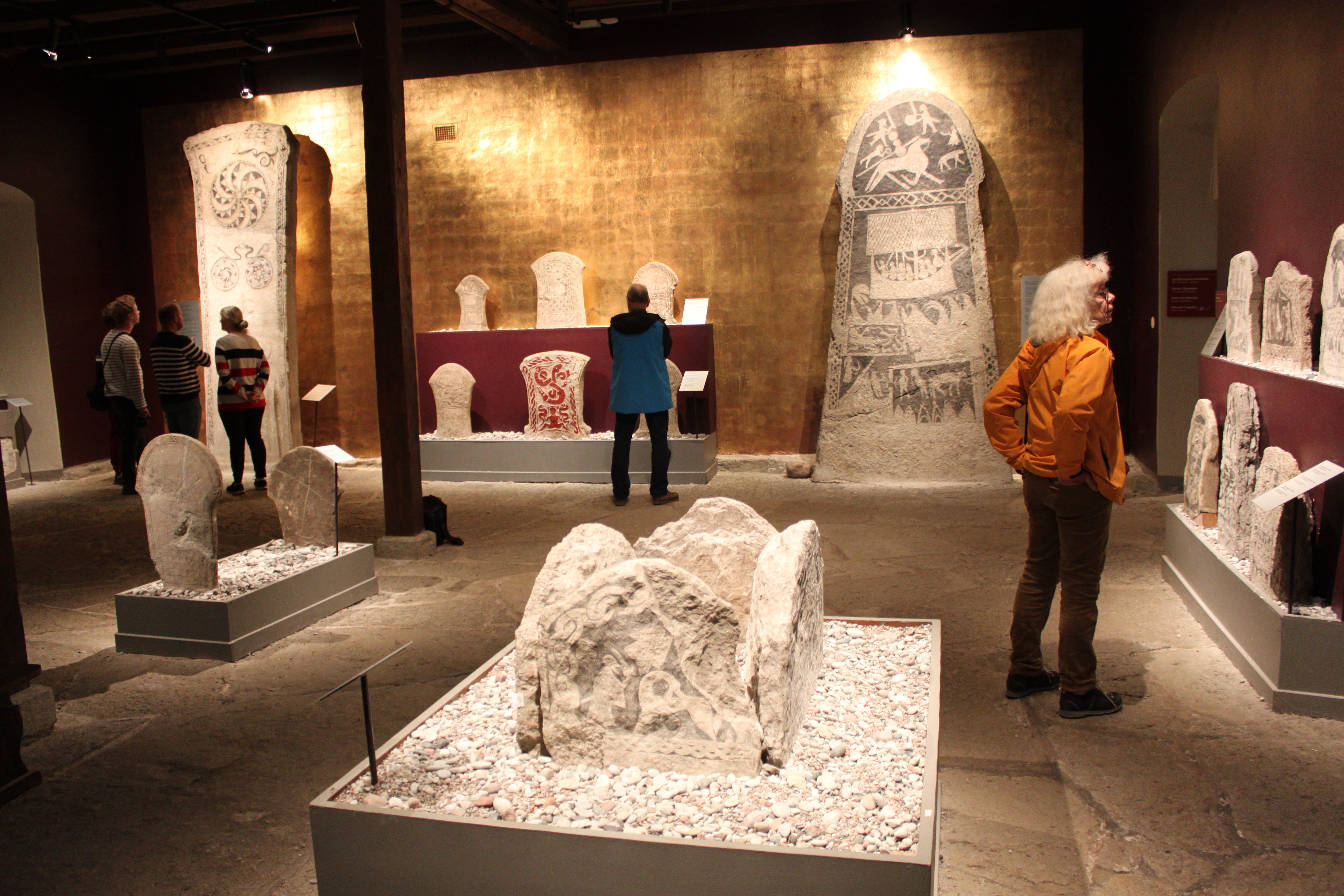Vanuit de aankomsthal kom je meteen in een zaal vol met beeldstenen uit een ver verleden (plm. 7e tot 10e eeuw) die hier een veilig plekje hebben gevonden en te mooi zijn om buiten in weer en wind te laten staan.
