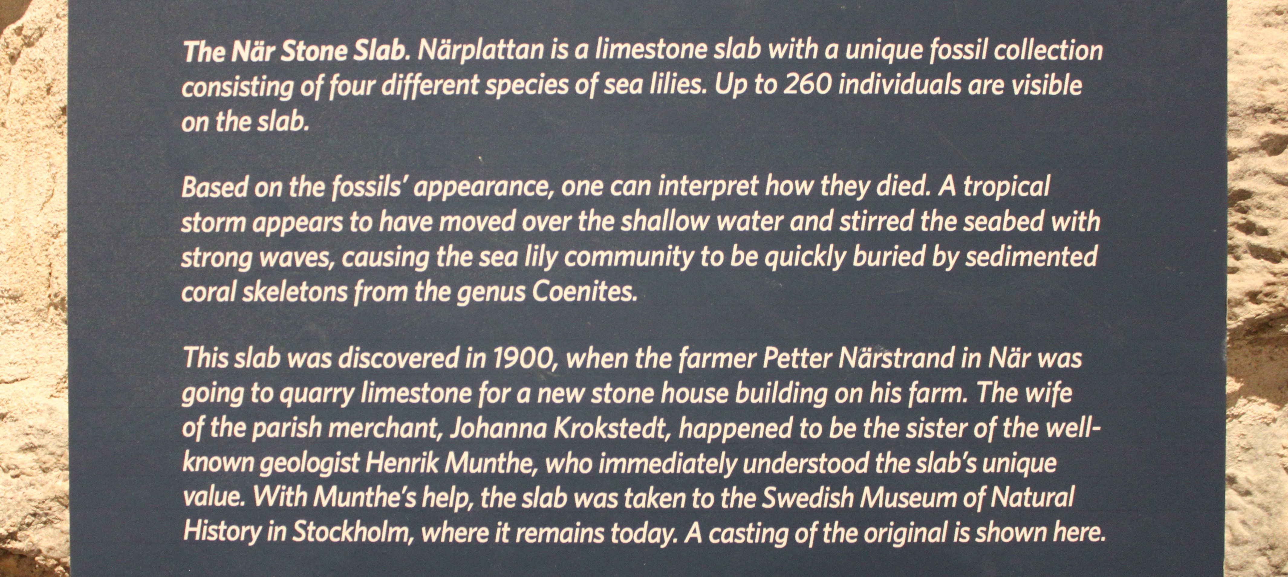 De menselijke geschiedenis van het eiland is zeer boeiend, maar we kwamen natuurlijk vooral voor de geologie van het eiland. Ook daar werd ruimschoots aandacht aan besteed in het museum. Veel prachtige fossielen zijn er tentoongesteld, waaronder een groot plateau met zeelelies waarvan ik eerst vermoedde dat die uit Marokko afkomstig was, maar 'gewoon' gevonden op Gotland. In dit geval echter wel een kopie.