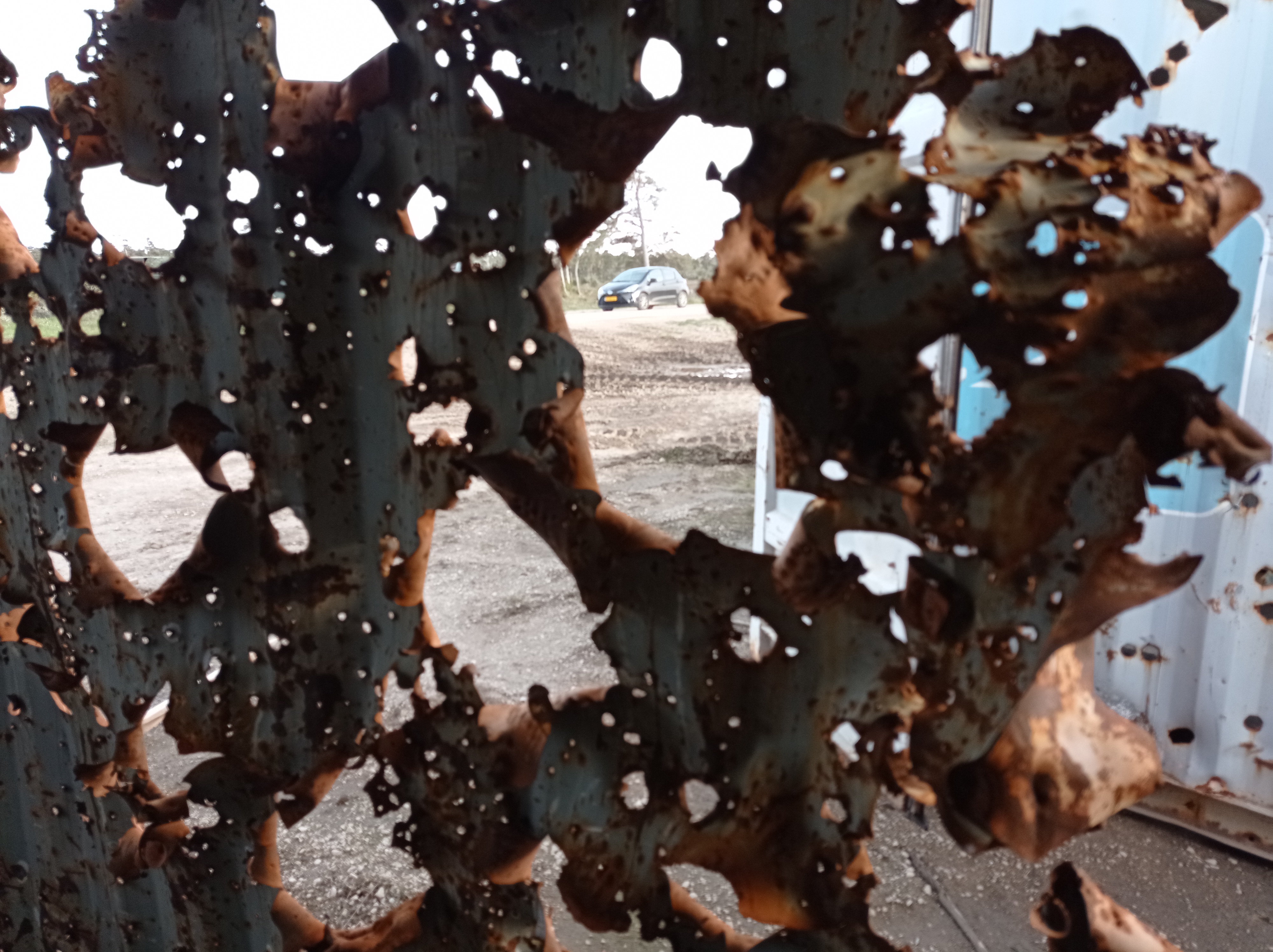 De regen van de afgelopen dagen leek me heel geschikt om een kettingkoraal een beetje vrij te wassen van los sediment. Liggend op de container ging dat alvast aardig en een laagje los kalk verzamelde zich op het deksel. Vanmorgen kwam ik erachter dat ik een fout had gemaakt!