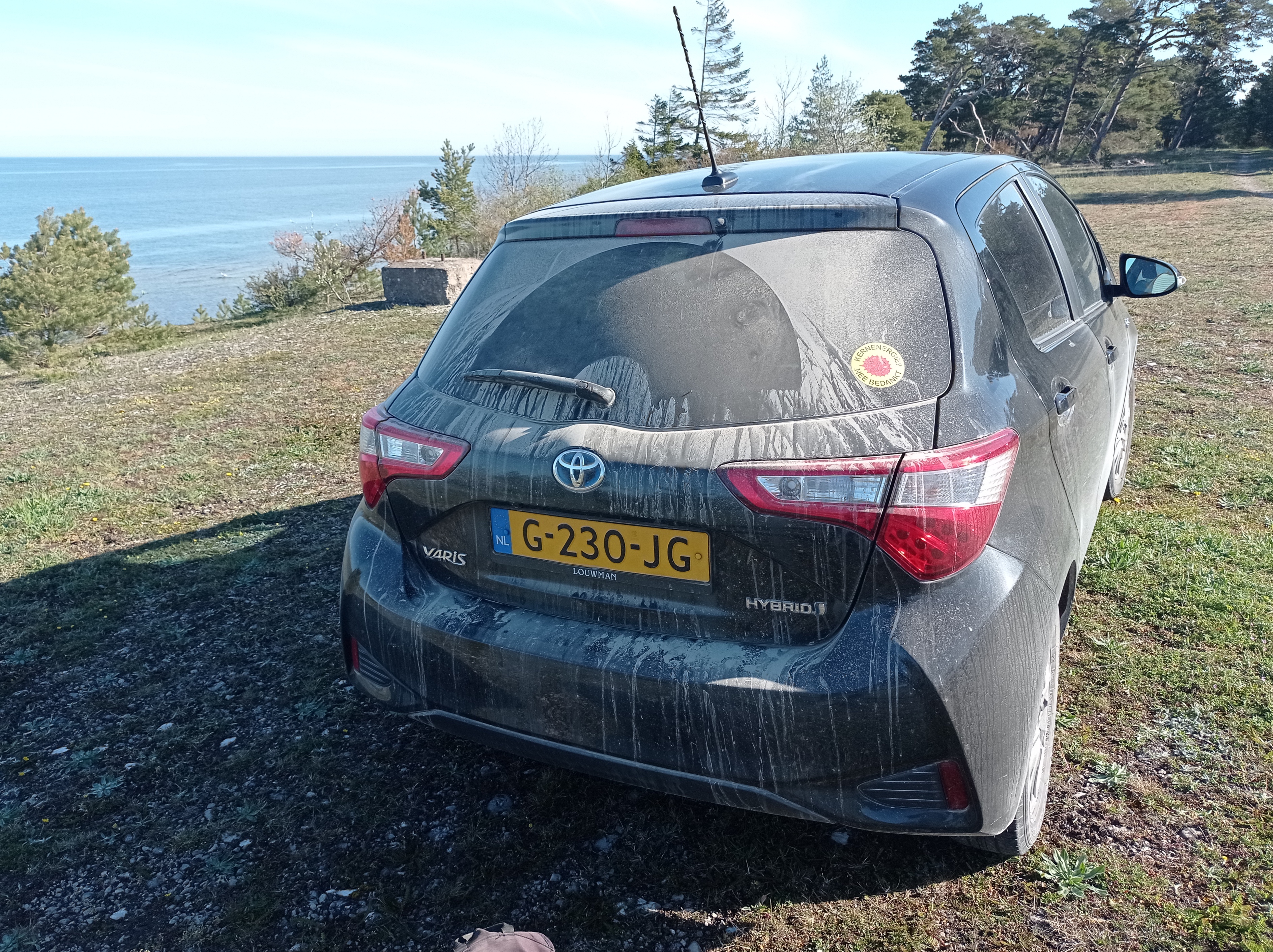 Het bezoek aan Gotland was wel een zware beproeving voor de auto. Afgezien van de vele flitspalen zijn de wegen prima en, behalve rond Visby, vooral erg rustig. De binnenwegen zijn vaak verhard met losse stenen. Als het droog is vliegt het stof hoog op achter de auto. Als je een klein model auto hebt, is de relatief hoge ‘middenberm’ riskant want die zit gauw tegen de onderkant van de auto. Gelukkig heeft de uitlaat het volgehouden en zijn de banden nog heel. Ik moet er niet aan denken de Toyota-hulpdienst in te schakelen en om ons op een onherbergzaam plekje weer vlot te krijgen.