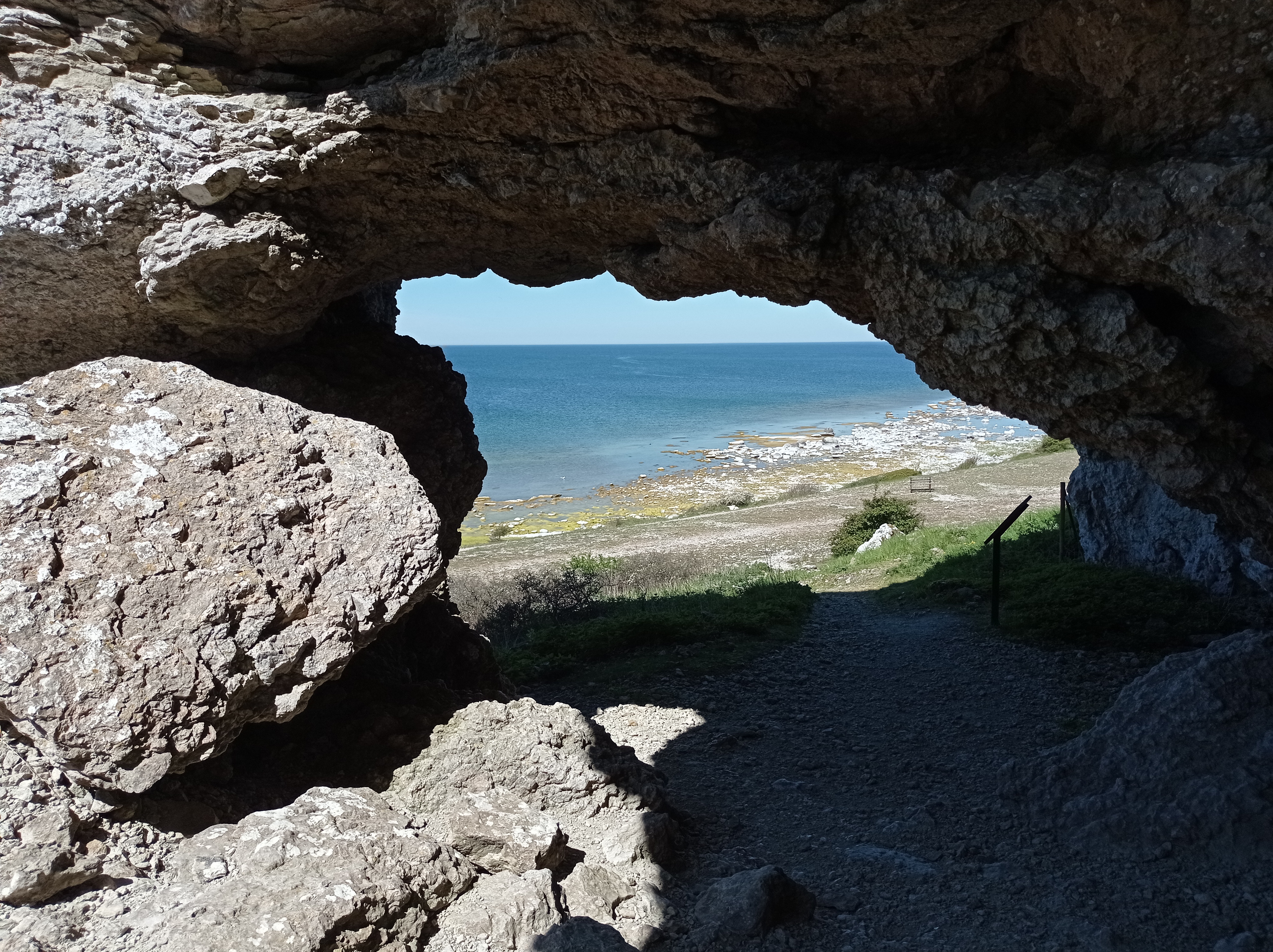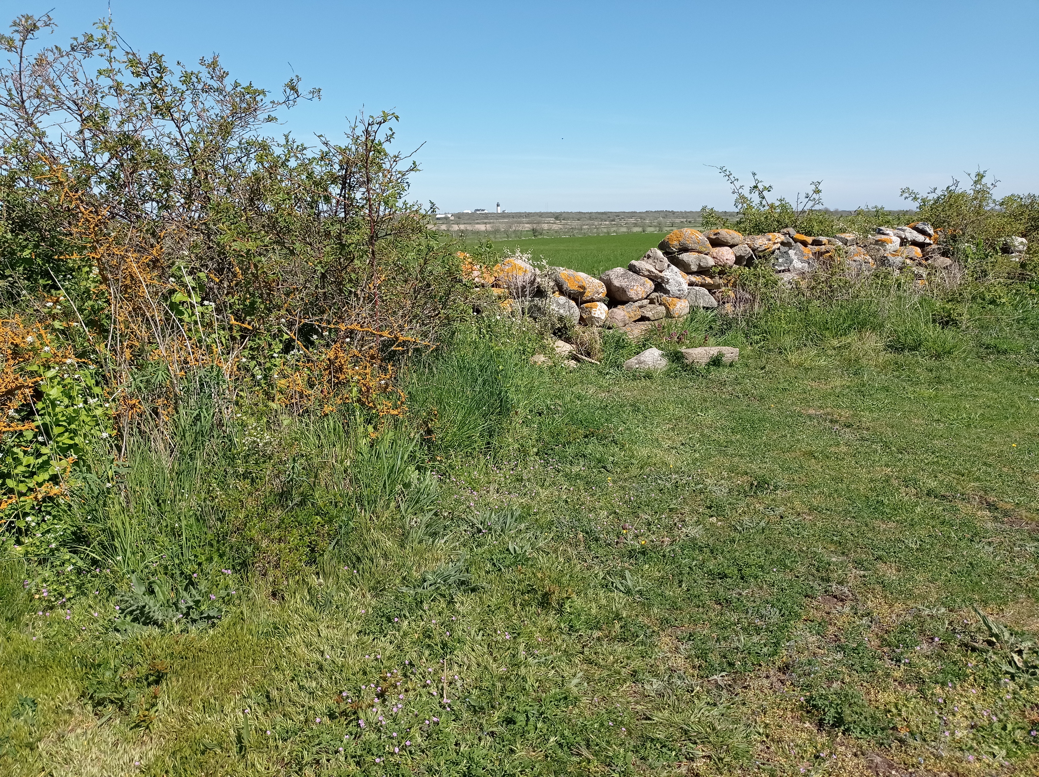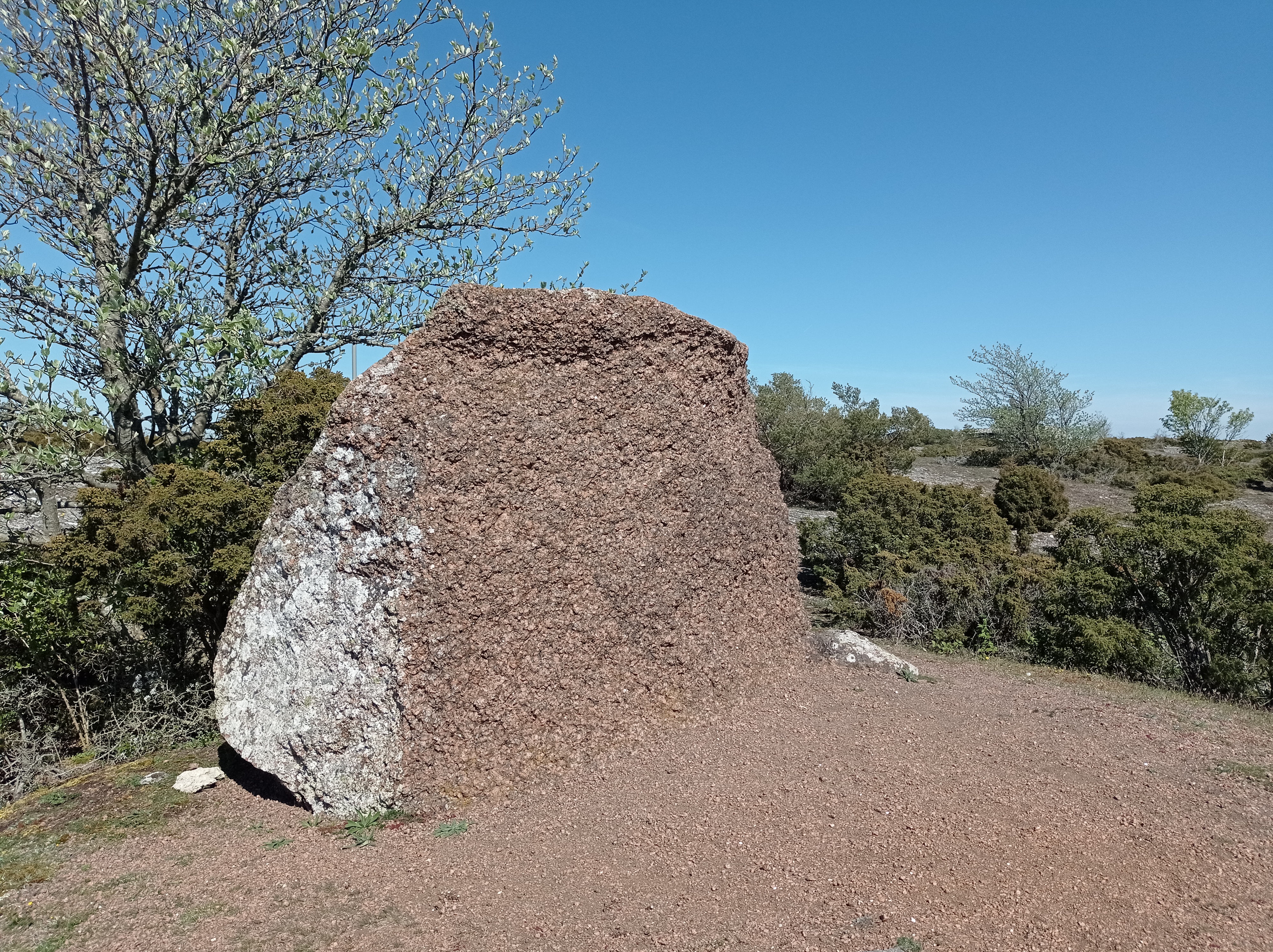 Verderop via de prachtige kustweg langs het natuurreservaat Husrygg naar het zuiden bevindt zich de imposante kalksteenheuvel van Hoburgen; een geliefde plek, ook voor de eilanders zelf die hier eind mei de geelbloeiende Voorjaarsadonis (Adonis vernalis) komen bewonderen. Helaas waren wij nog iets te vroeg voor deze belevenis. Na parkeren op de ruime parkeerplaats bleek dat we met de auto vlak voor een steenkist uit de prehistorie stonden.