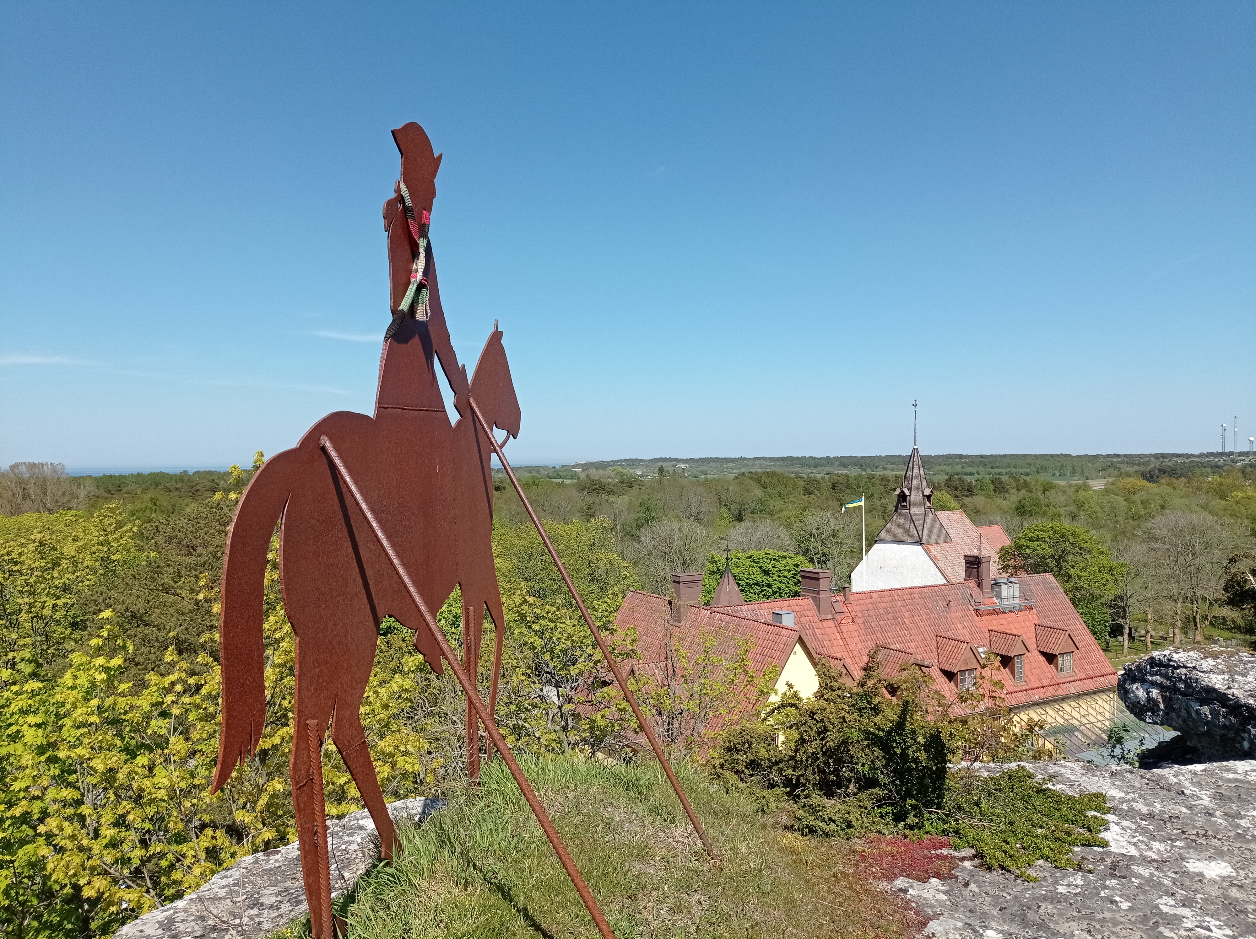 Op de terugweg wilden we nog langs een oude groeve bij Östergarn. Deze misten we in eerste instantie omdat we waren afgeleid door het schitterende kerkje. Bij het keren van de auto zag ik in de spiegel plotseling een figuur te paard bovenop de heuvel :shock: