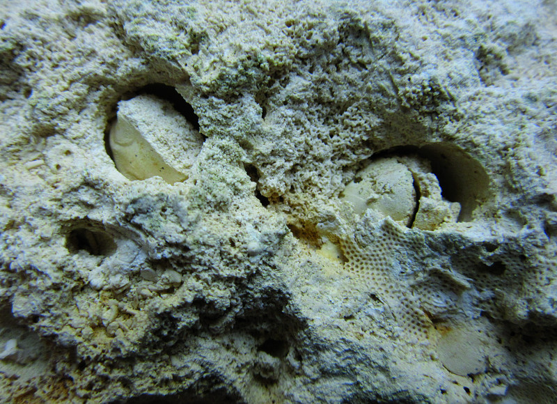 Ik vraag me af of dit een steen is. Als het een steen is, dan vraag ik mij af wat voor dier gaten kan boren in een steen? Verder vraag ik mij af of de zichtbare buisjes van de wormen fossielen zijn of recent. In 1 van de gaten zitten trouwens donkere buisjes.