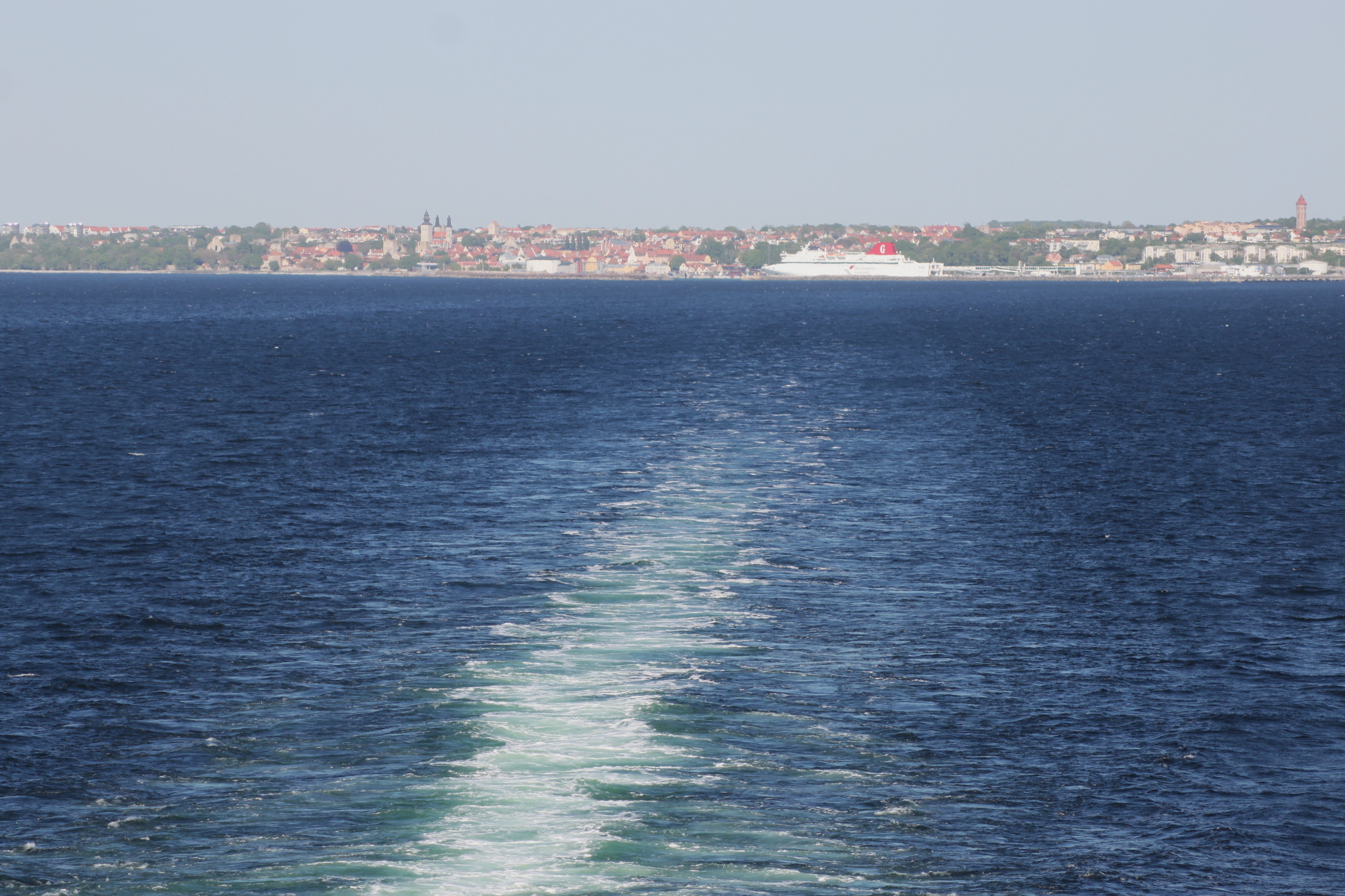 Eigenlijk hadden we door de weersomslag nog weinig trek om onze tent nog ergens in Denemarken op te slaan. Dus toen we uit de drukte waren, reden we door naar de veerboot van Rødby. Een dag te vroeg waardoor ons boekingsbewijs niet werd geaccepteerd door het scanapparaat. De slagboom bleef dicht…
