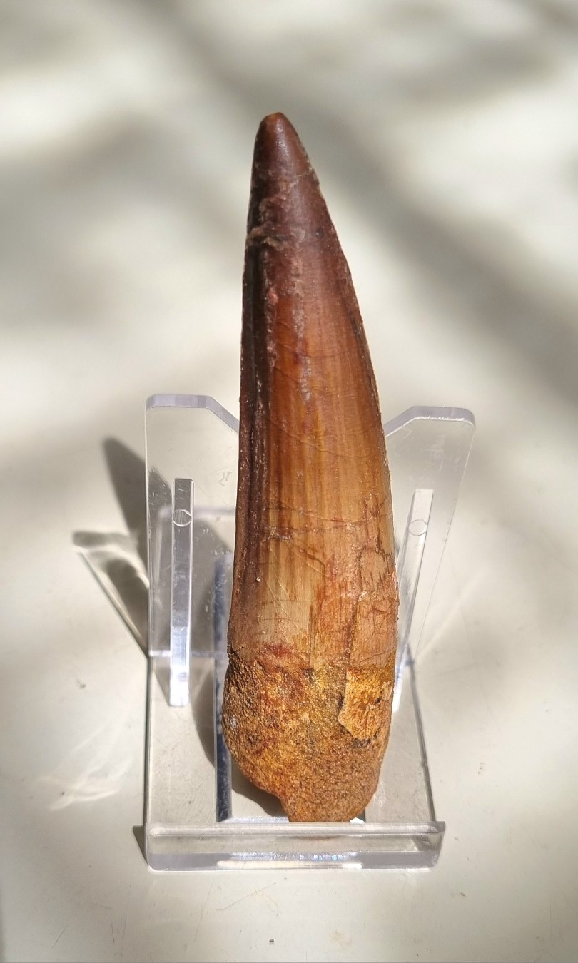 Spinosaurus aegypticus tooth 8.5cm, Kem Kem 04.jpg
