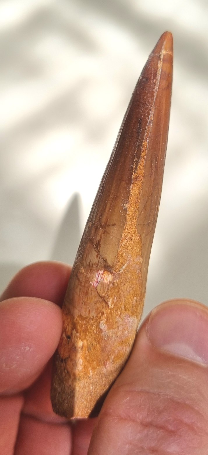 Mooi behouden gebleven Spinosaurus aegypticus tand, 8,5cm uit de Kem Kem van Marokko. €100 VERKOCHT