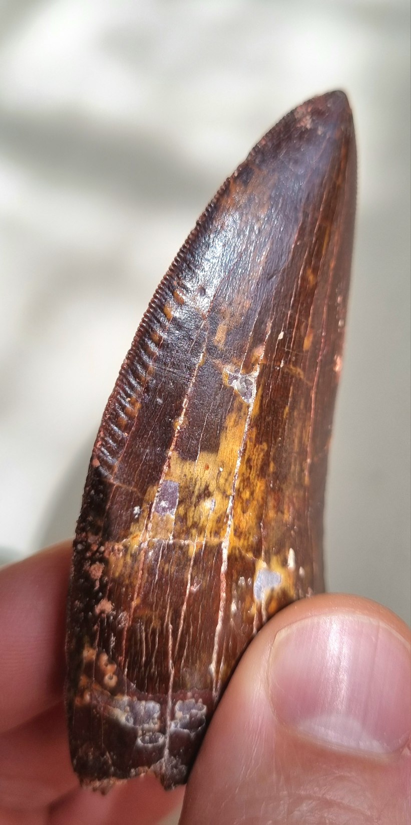 11cm Carcharodontosaurus tooth, Kem Kem 10.jpg