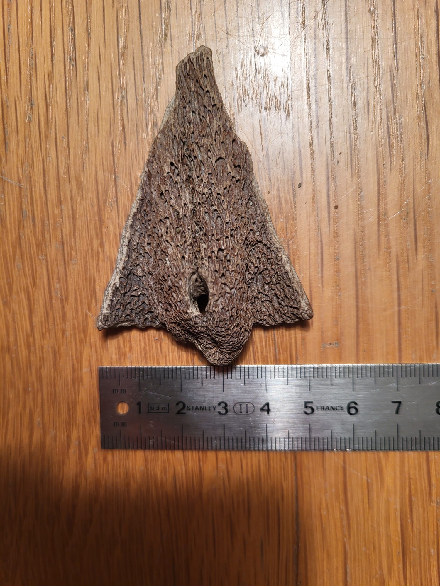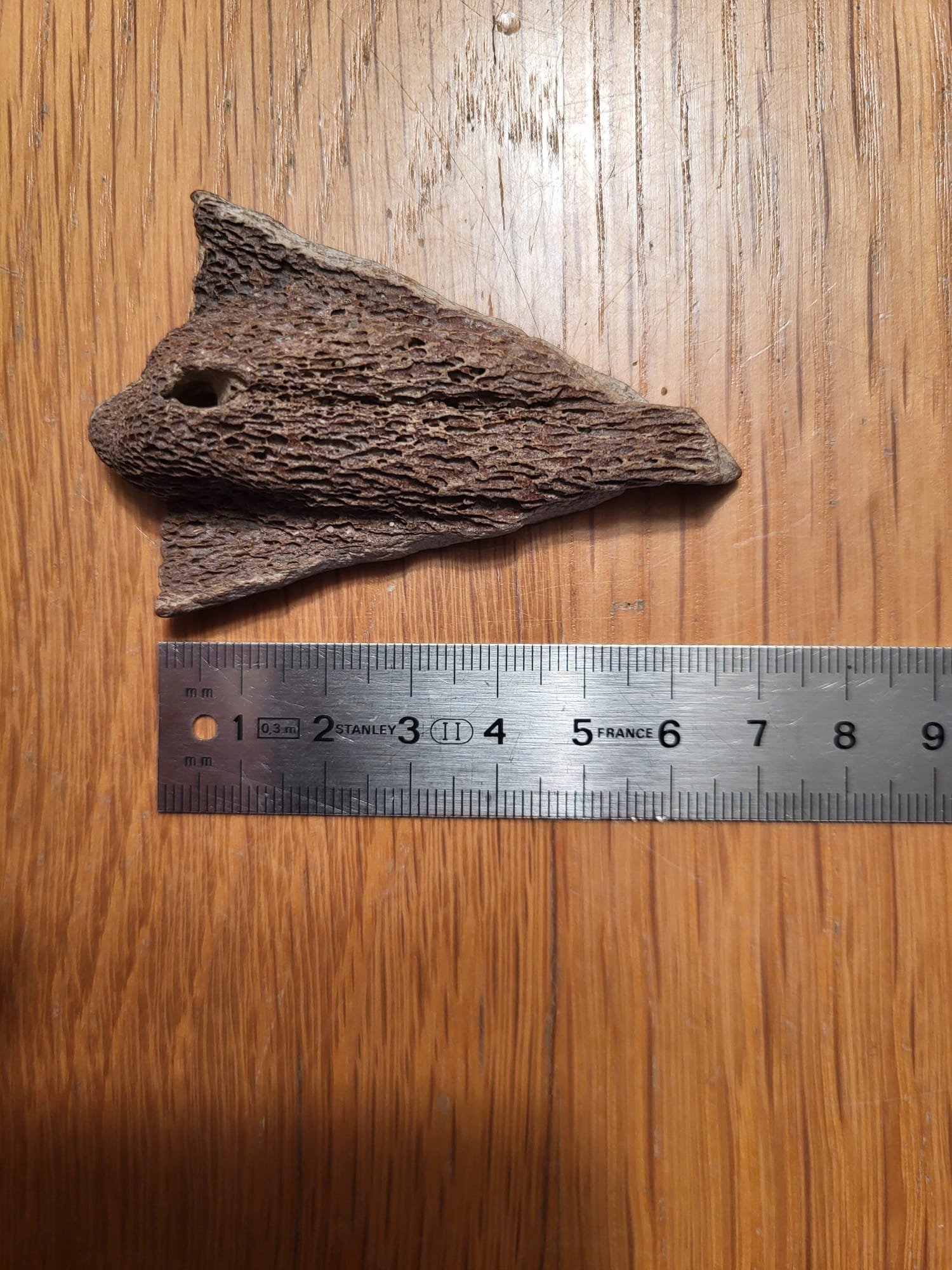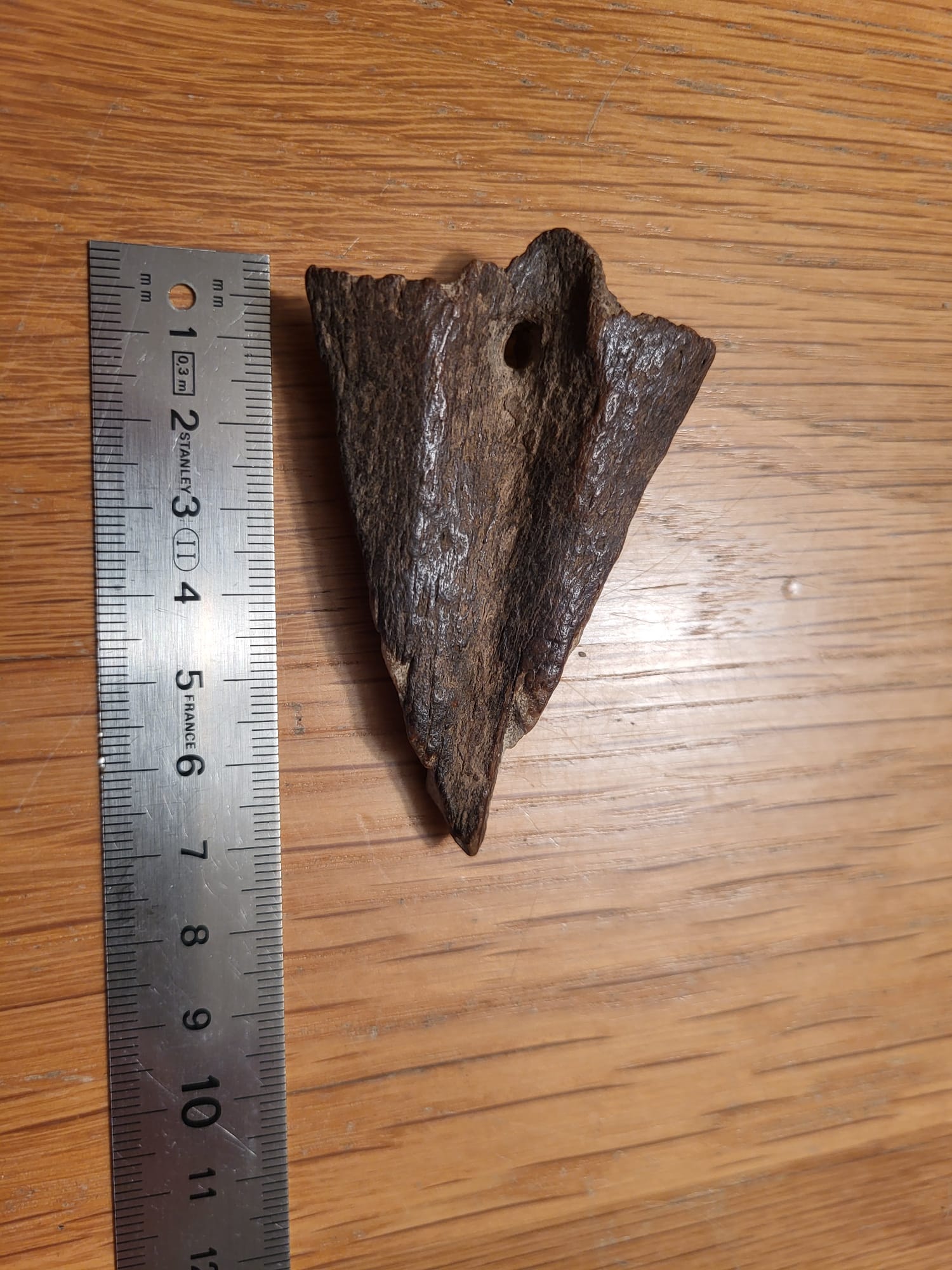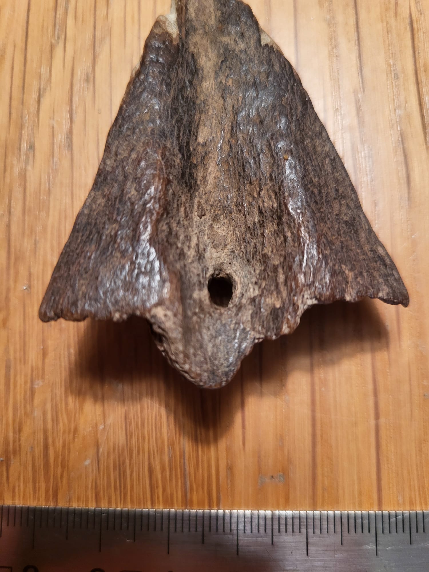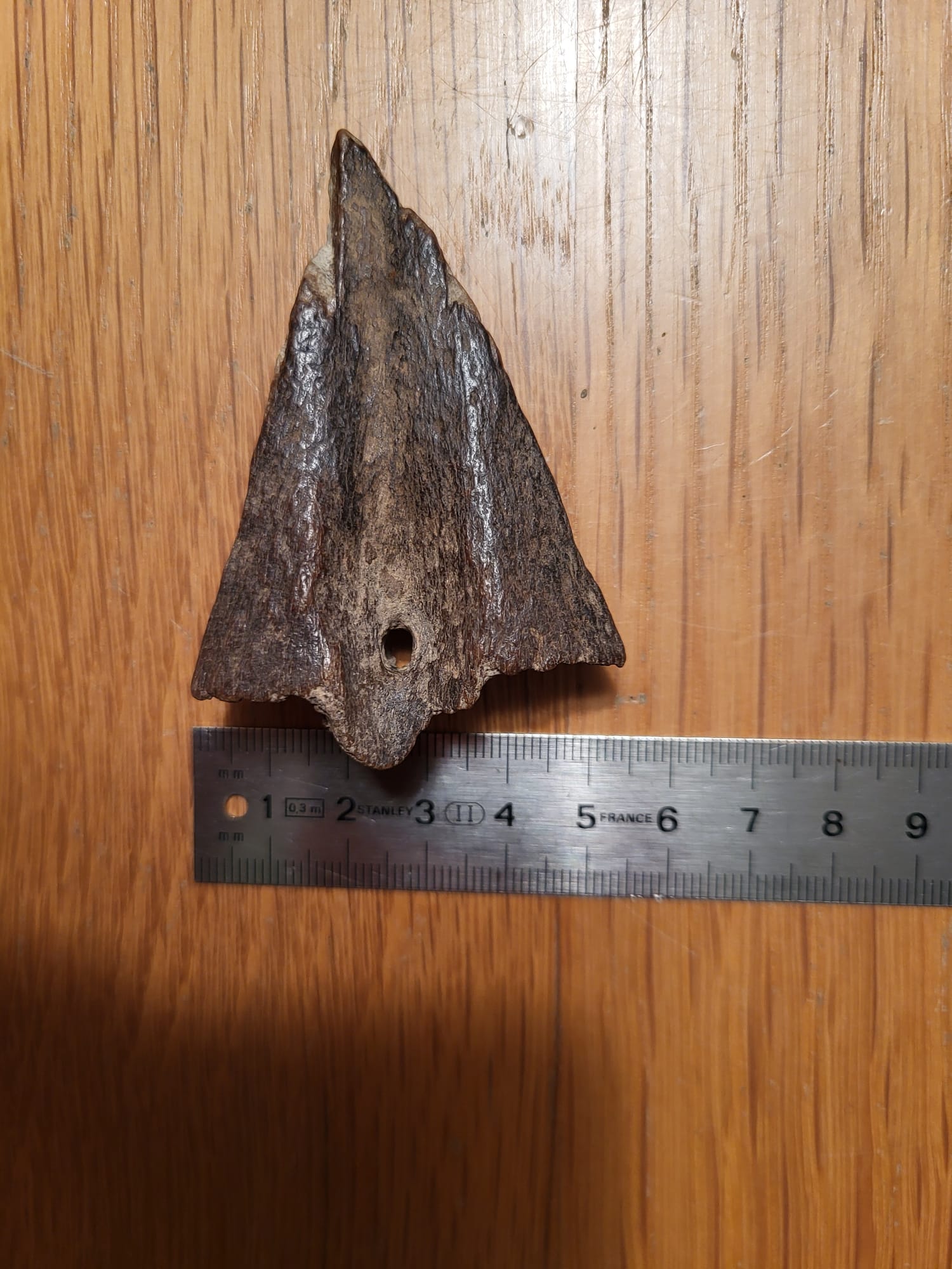 Symmetrisch, pijlvormig bot met gat (hoek van Holland)