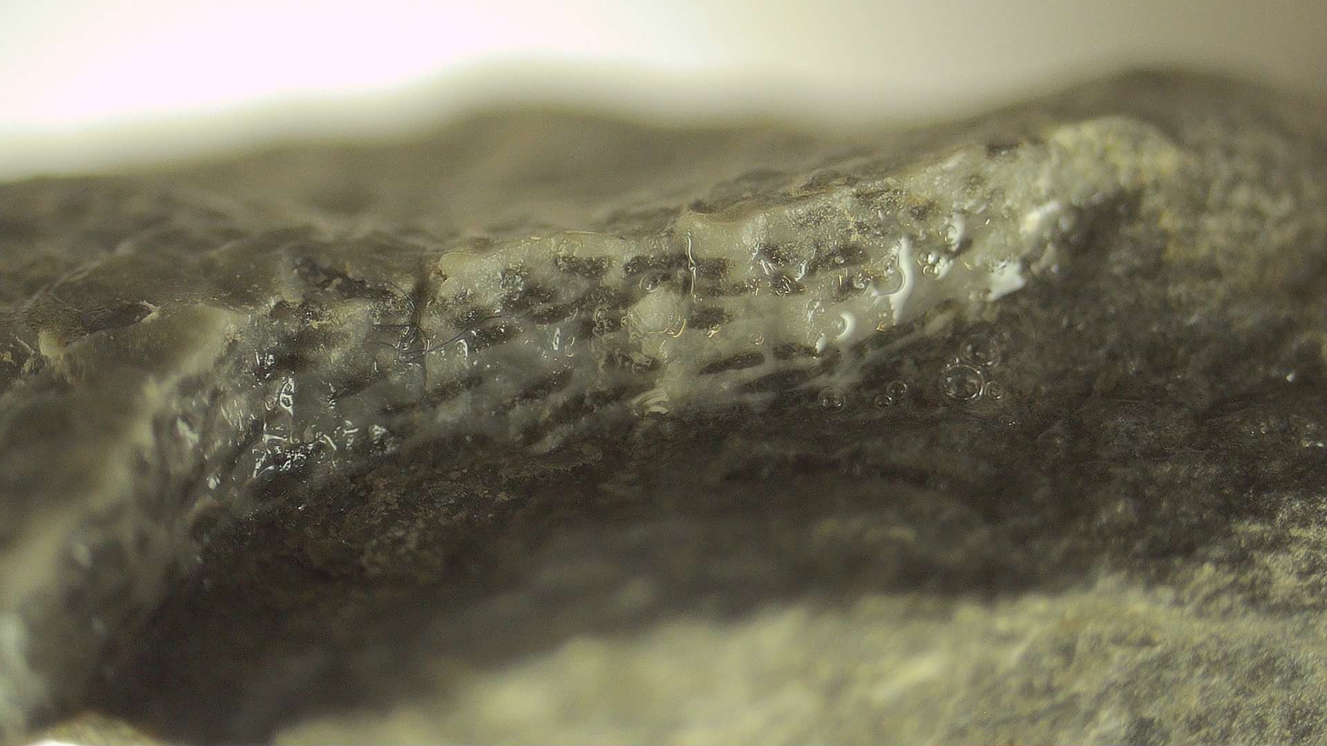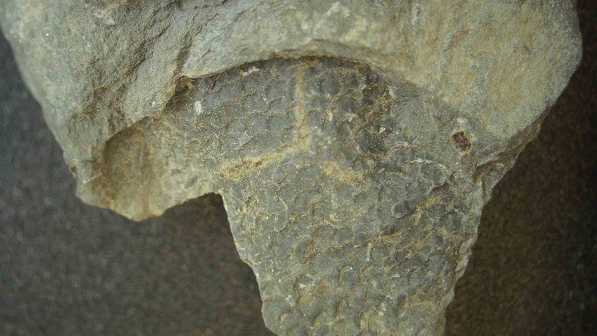 Ik heb in het verleden gehoord dat er op het onderste niveau van de groeve, direct tegen de parkeerplaats, fossielen van Placodermen zijn gevonden. Hoe die eruit zien en of deze op andere niveaus van de groeve ook te vinden zijn weet ik niet. De laatste foto doet idd denken aan schubben.