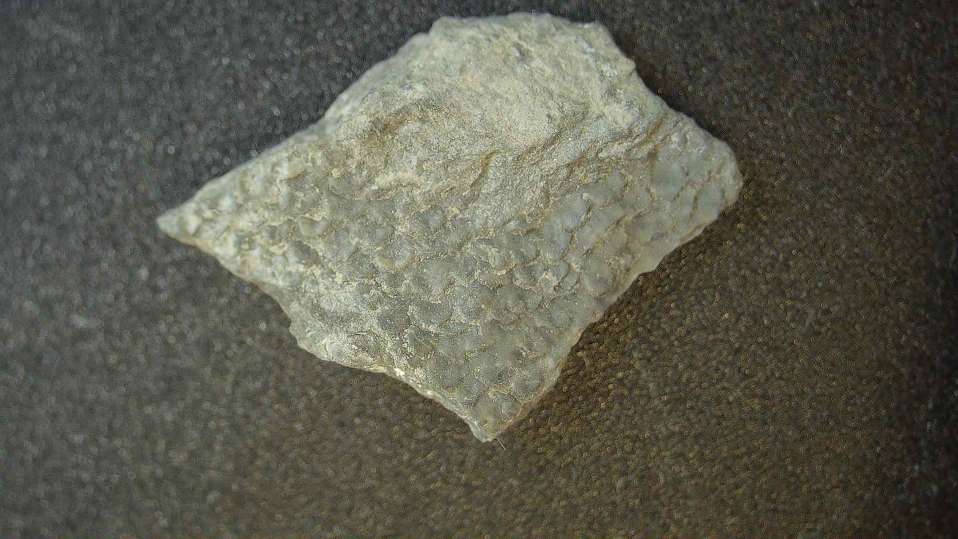 onlangs gaan zoeken in de groeven van Resteigne. Normaal gezien ben ik iemand die vooral aan zee zoekt, dus dit is een verandering in fauna en omgeving. Ik vond er naast wat trilobieten(resten) ook deze geschubde fragmenten, waarbij ik vrees dat ik zelf de fragmenten veroorzaakt heb. Kan iemand hier meer over zeggen?