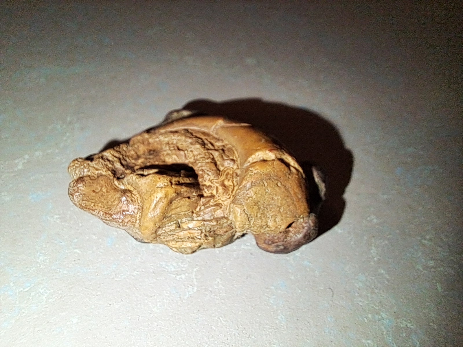 Als je goed kijkt zie je dat er iets van een schaal omheen ligt.