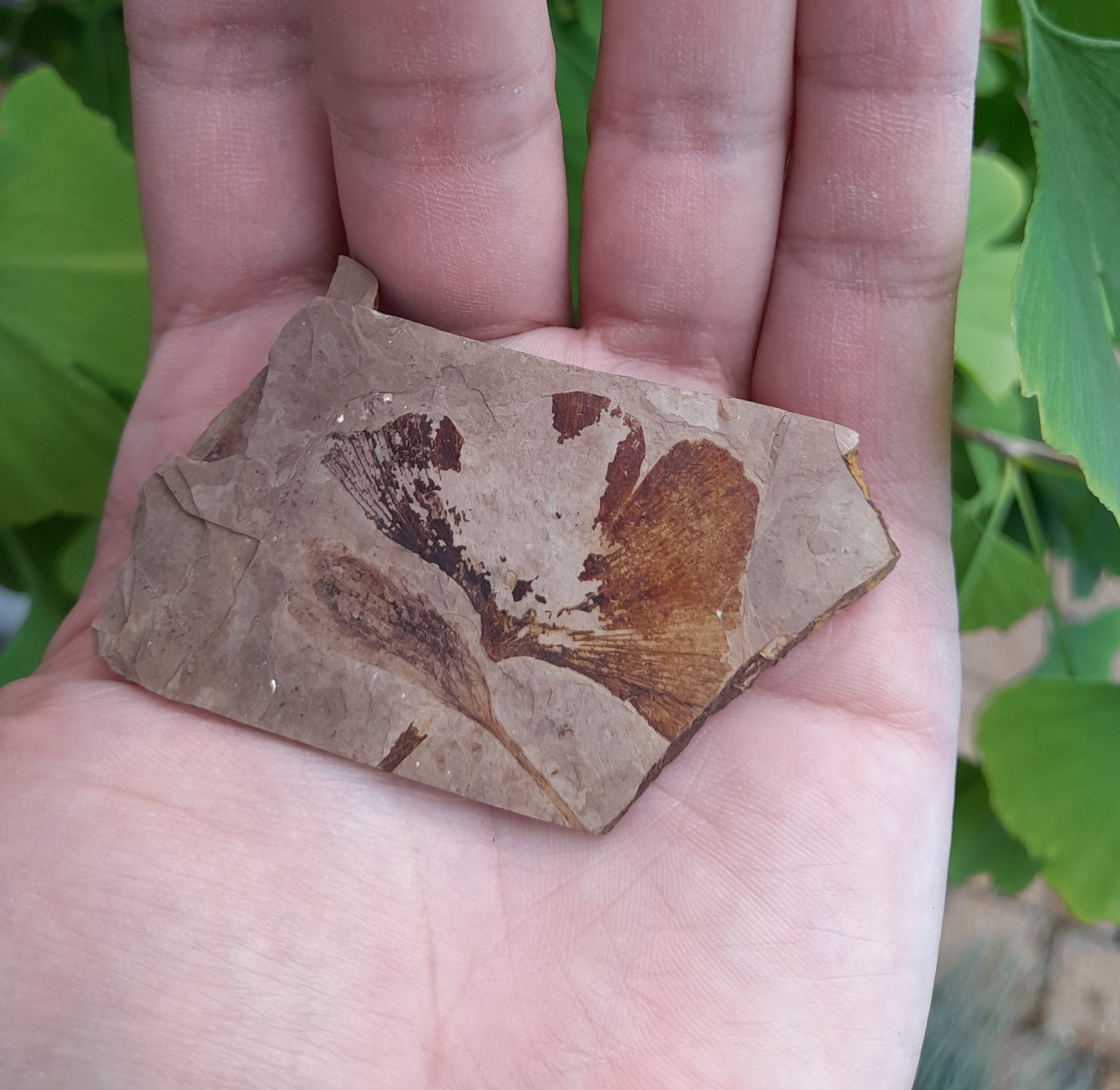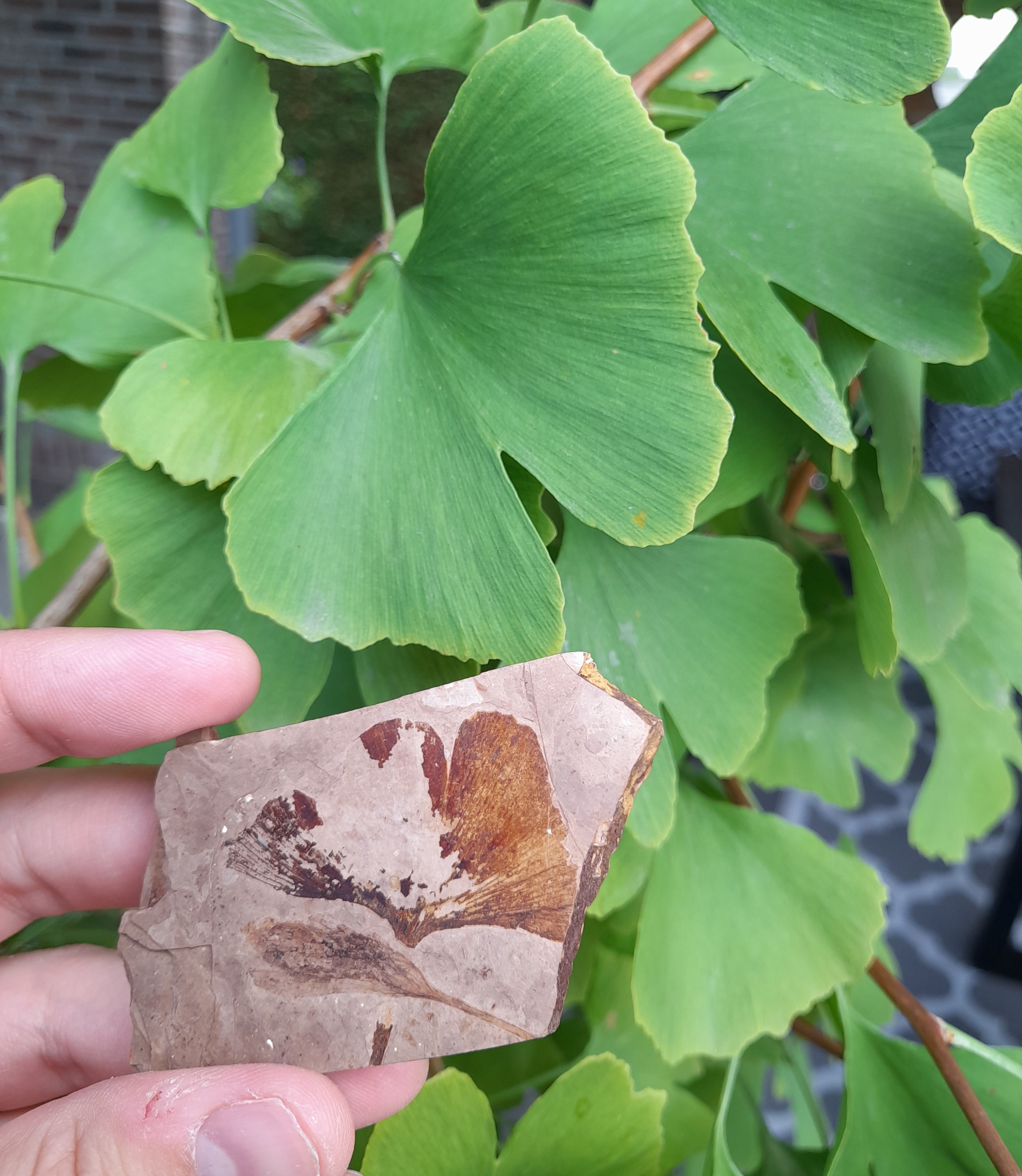 Ginkgo biloba blad gevonden in de McAbee Fossil Beds, Cache Creek, British Columbia, Canada - Eoceen, Ypresiaan, 53 mya