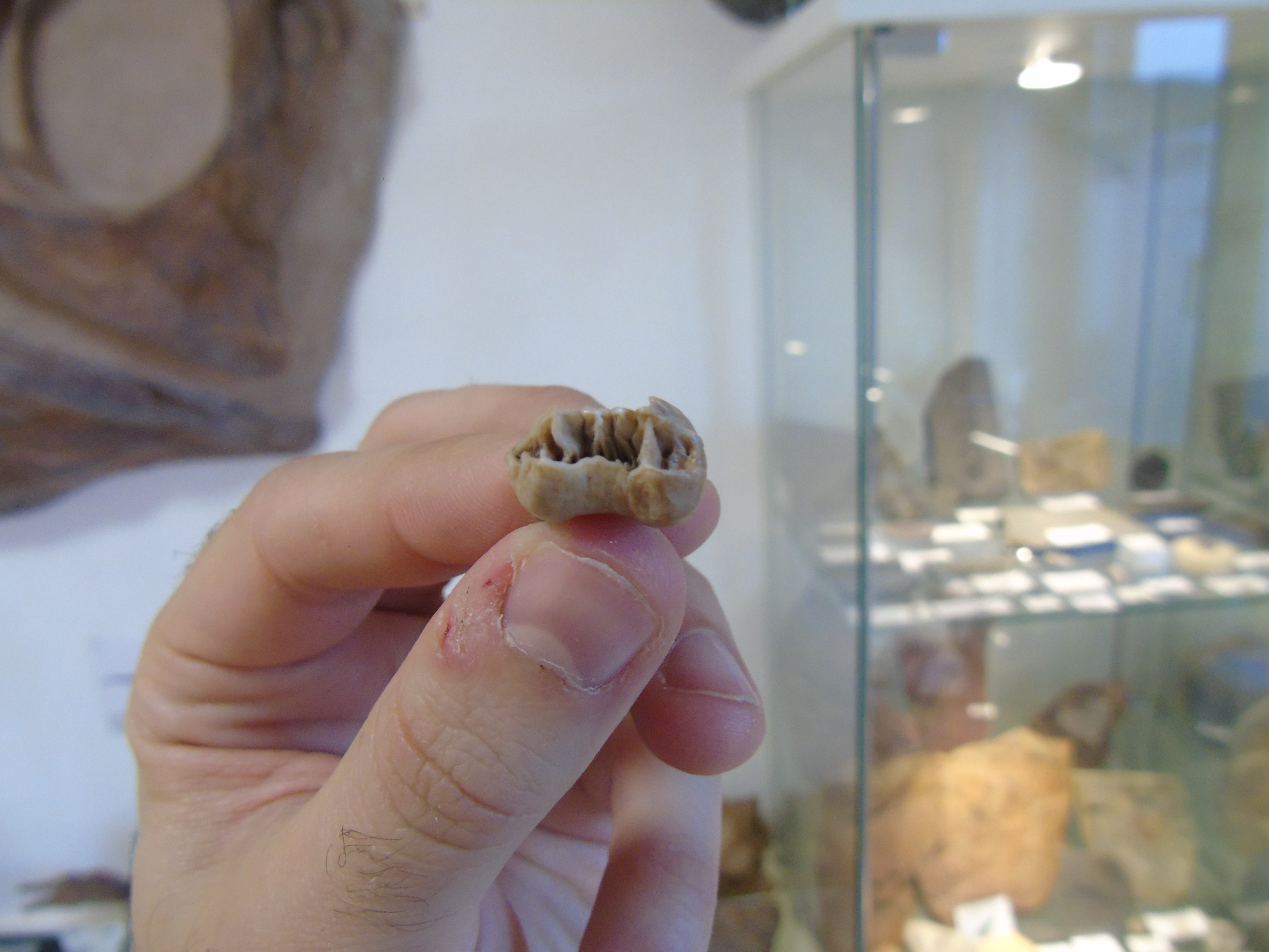 Homogalax kaakfragmentje (primitieve tapirachtige) gevonden in de Willwood formatie, Powell, Wyoming, USA - Eoceen, Ypresiaan, 56 - 52 mya