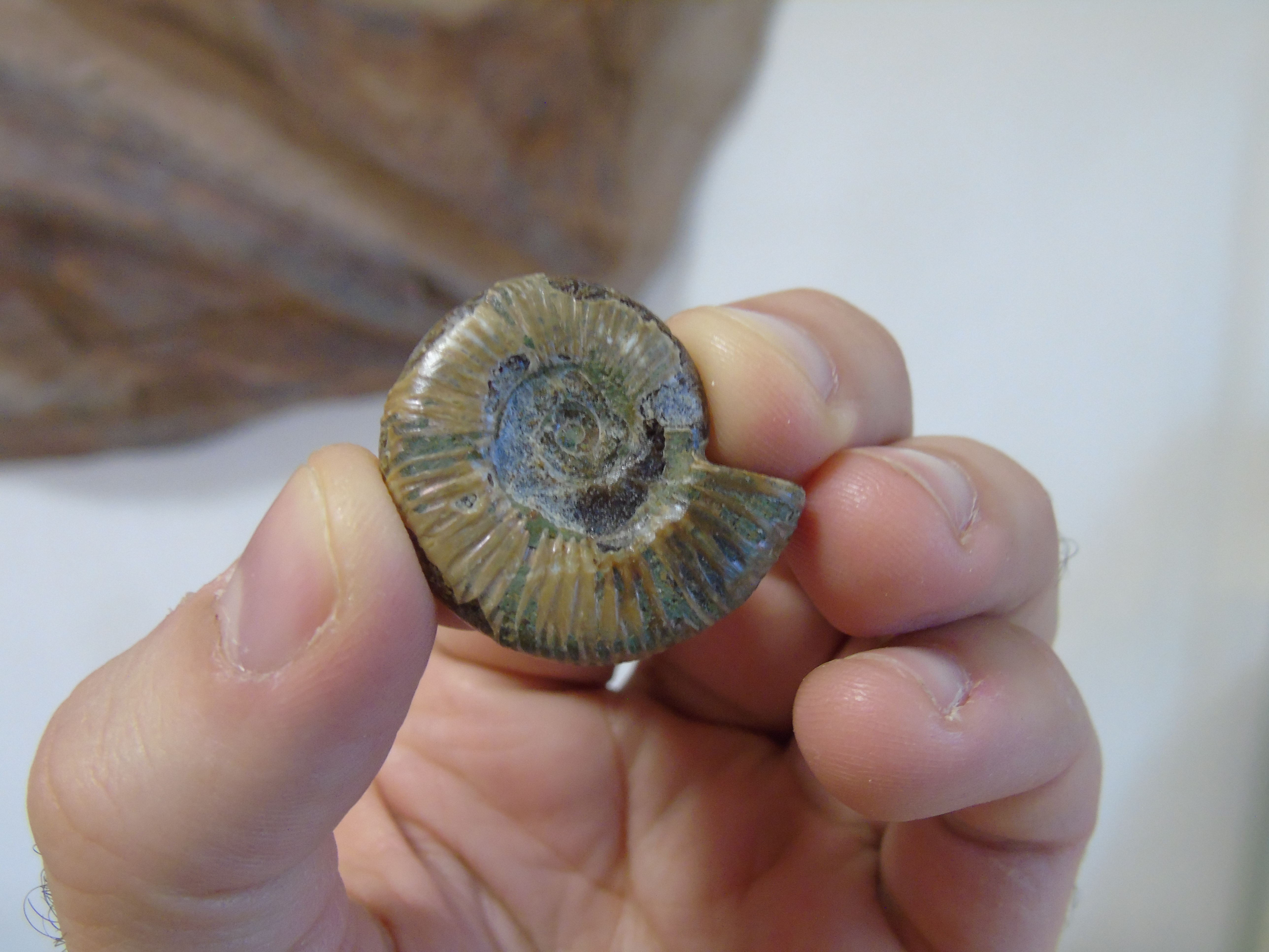 Perispinctes ammoniet uit Madagaskar Champsosaurus tand gevonden in de Hell Creek Formatie, Harding County, Montana, USA - Krijt, Maastrichtiaan, 66 mya