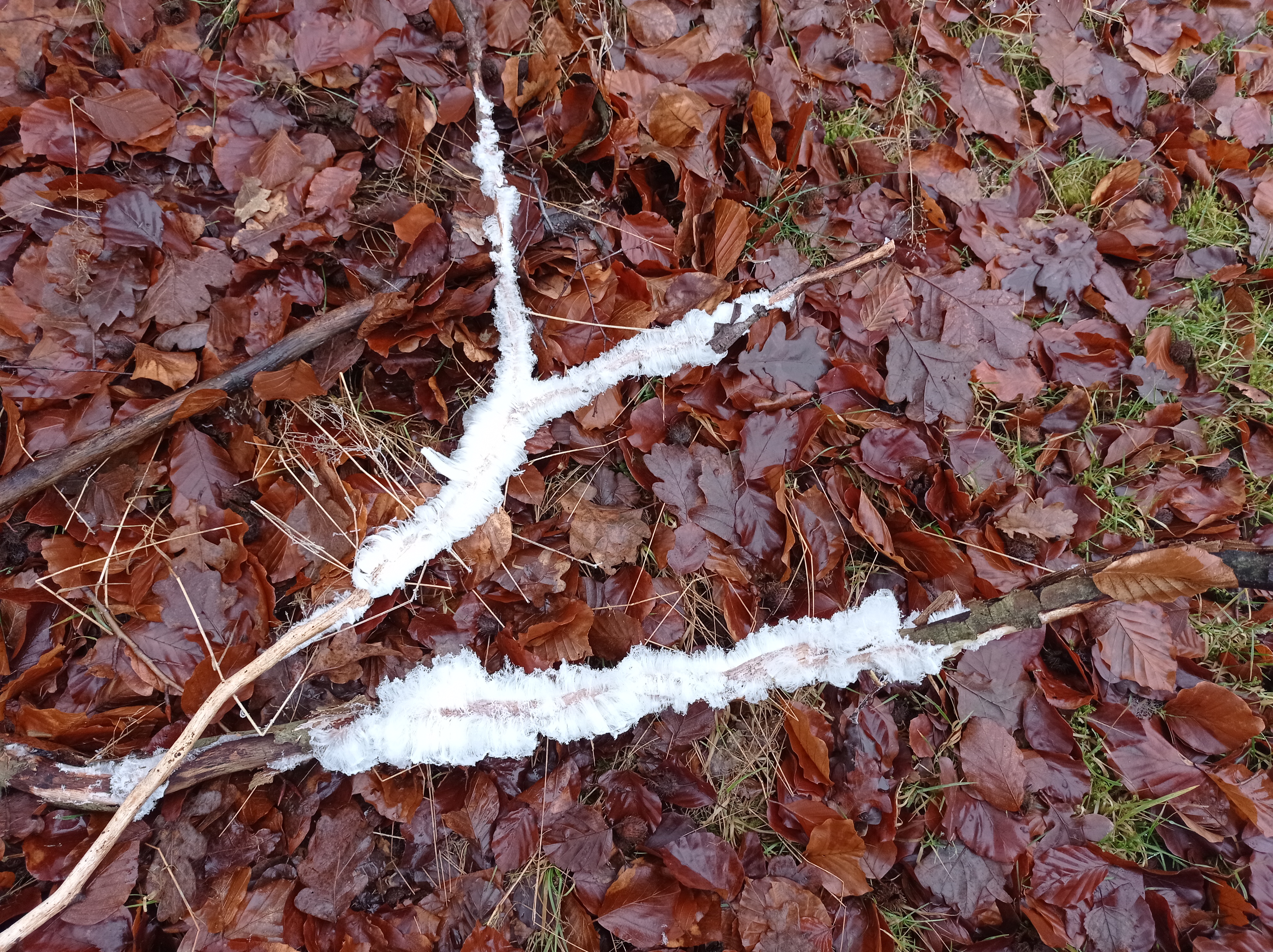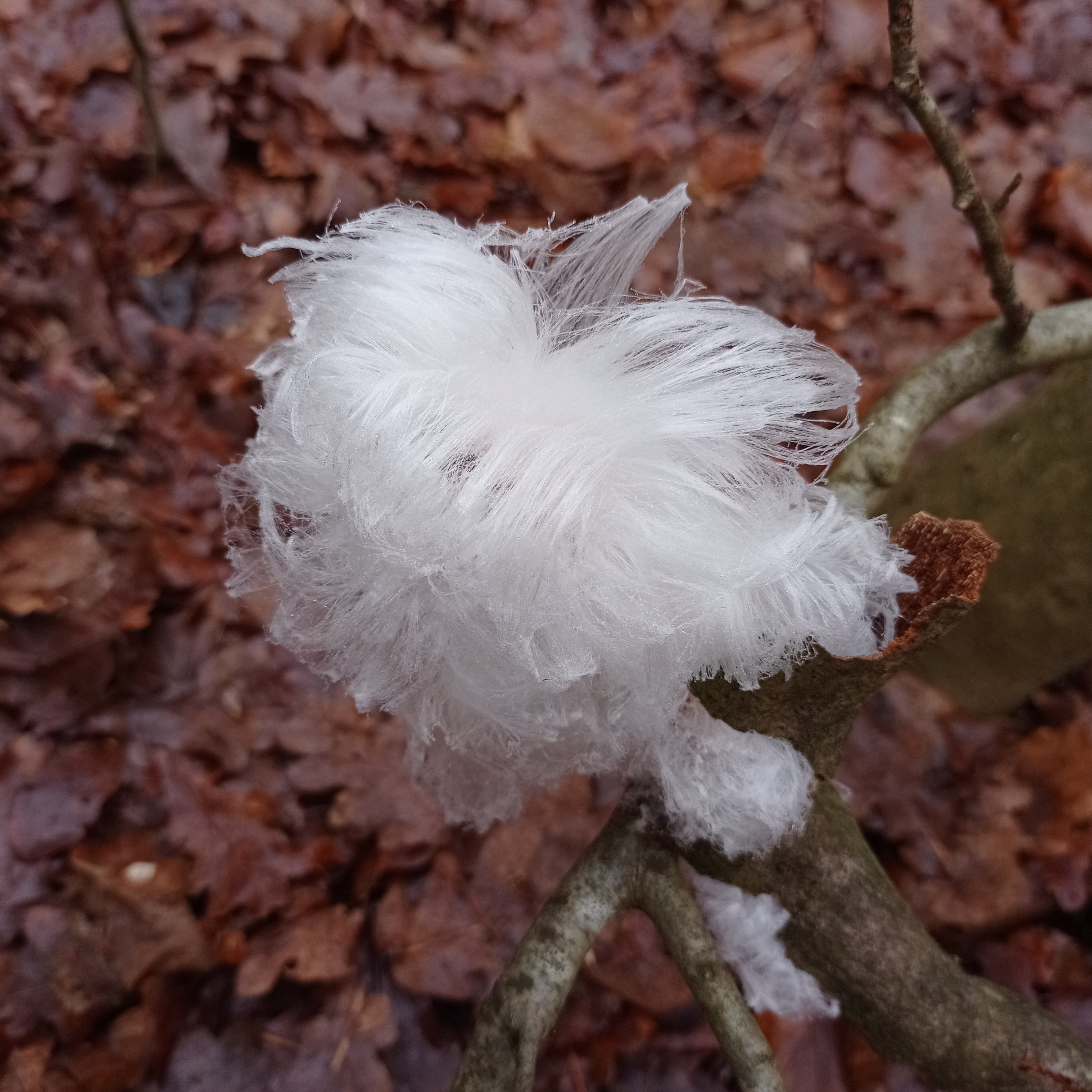 Bij het koude winterweer raakt het zoeken en vinden van leuke geologische objecten naar de achtergrond, maar de radar blijft actief en zo kwam ik gisteren in de mist samen met mijn vrouw dit voor mij bijzondere fenomeen tegen in het prachtige bos van Exloo (Dr.): ijshaar oftewel 'de baard van Koning Winter'. Ik kan mij niet herinneren dit ooit eens zelf gezien te hebben en het voelt dan ook als een leuke vondst.