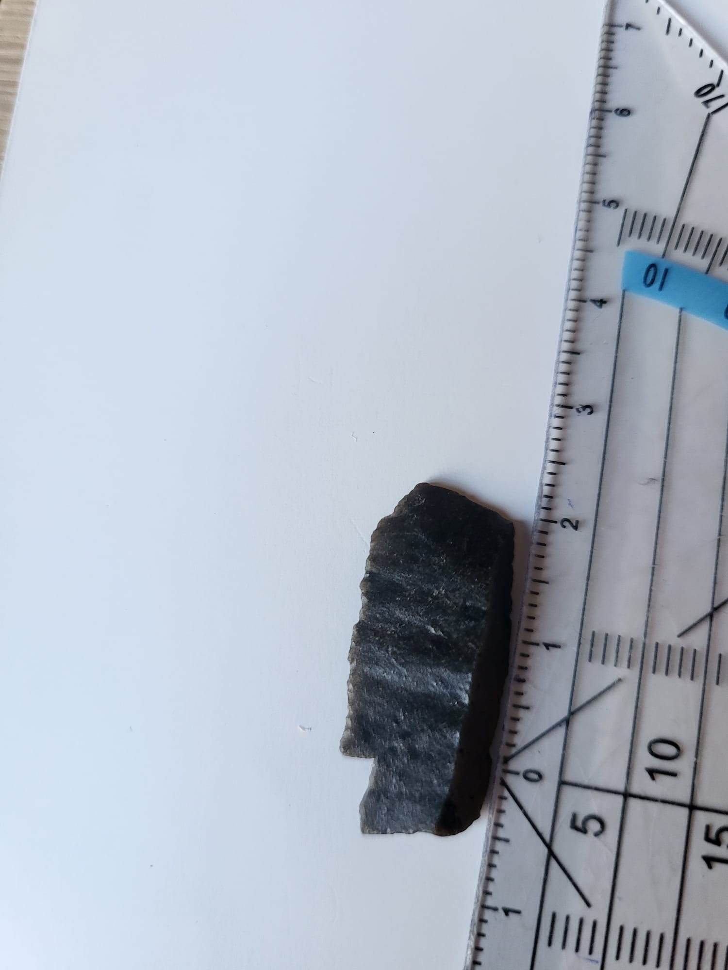 Ik heb gister een stukje vuursteen gevonden op de zandmotor, waarvan ik zou willen weten of het een bewerkt vuursteentje is of niet. Het steentje is ongeveer 3 cm lang en 1 cm breed. De onderkant is volledig vlak. De bovenkant heeft aflopende, scherpe randen (op een na, de rand bij de inkeping). Daarnaast is er een inkeping op de hoek. Is dit natuurlijk gebeurd of heb ik te maken met een bewerkt steentje.