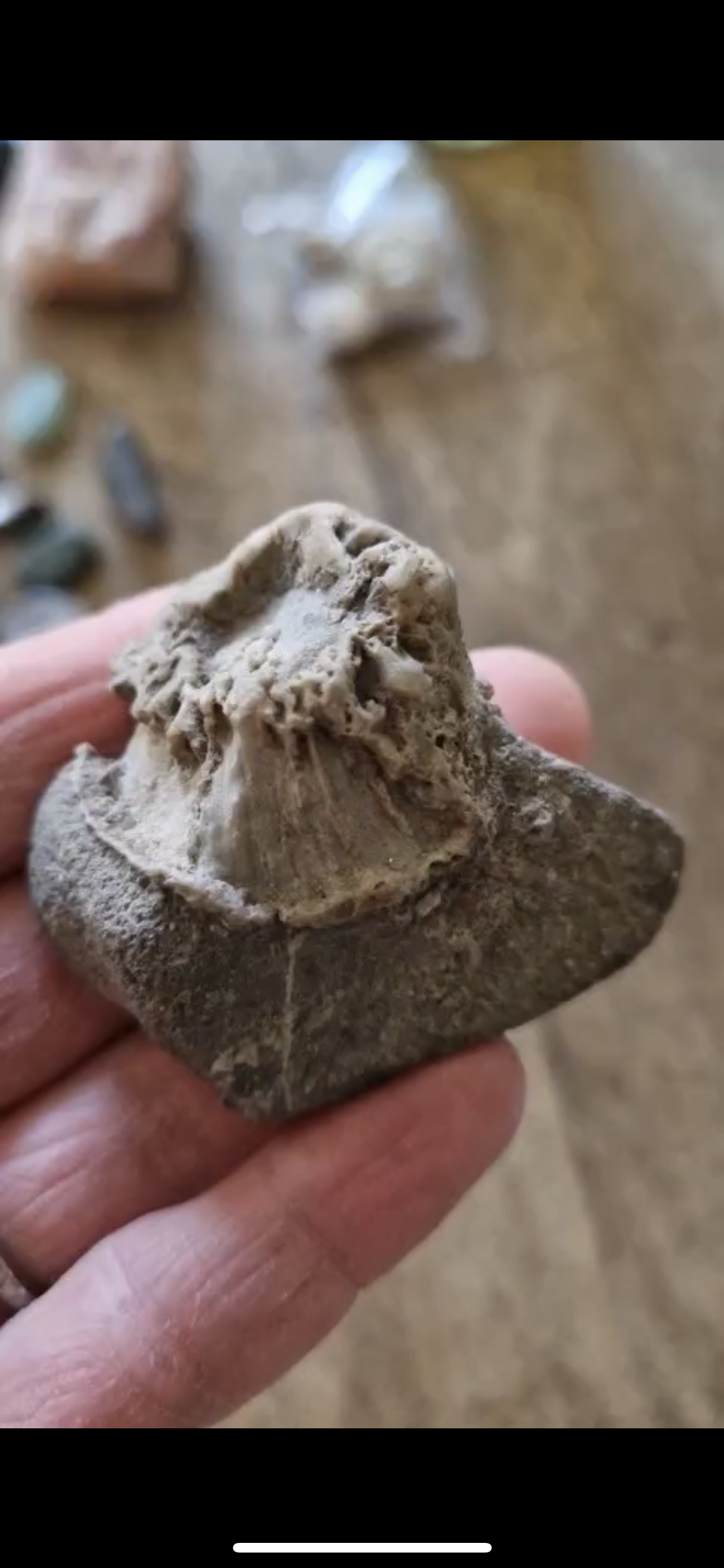 Deze vermoedelijk fossiel ? In mijn jeugd opgeraapt. Vermoedelijk ergens in Normandië.