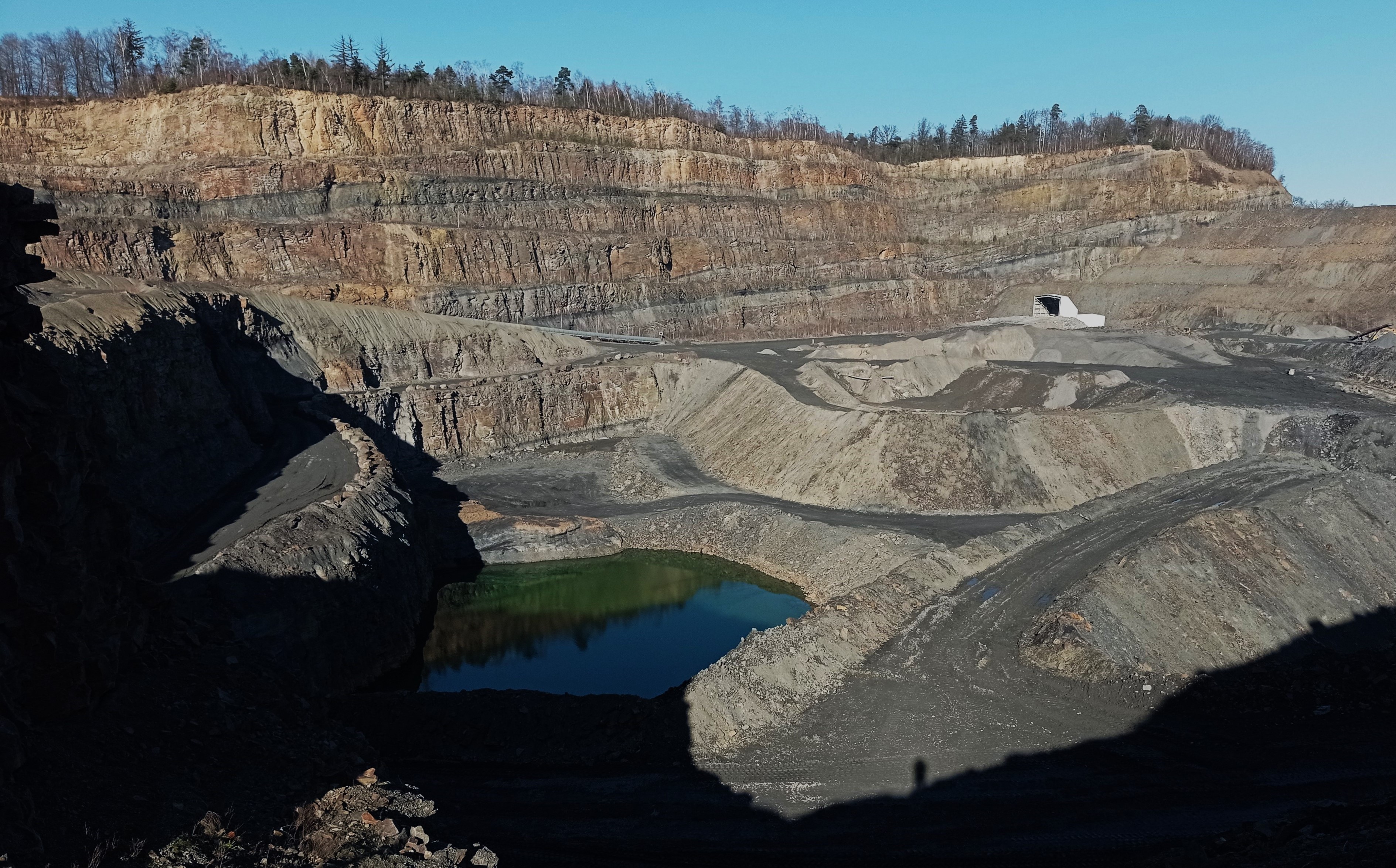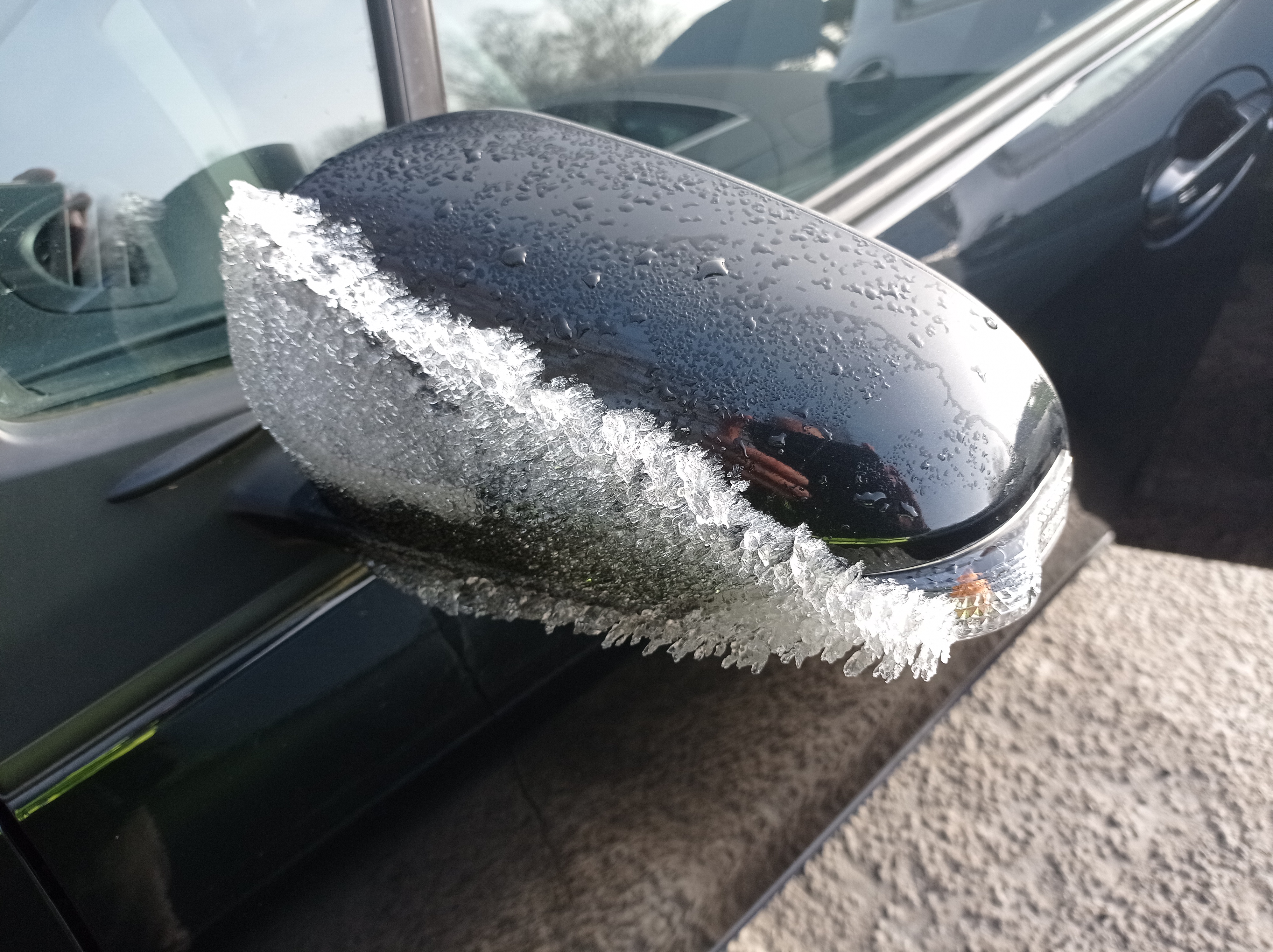 Op de heenweg op de Autobahn hadden we behoorlijk last van de soms dichte mist, maar aangekomen in Osnabrück bleek al gauw dat het een prachtig zonnige dag zou worden. Grappig was dat we al voordat we de groeve in gingen de eerste mineralen konden bewonderen (aan de zijspiegels van onze auto's) :lol: