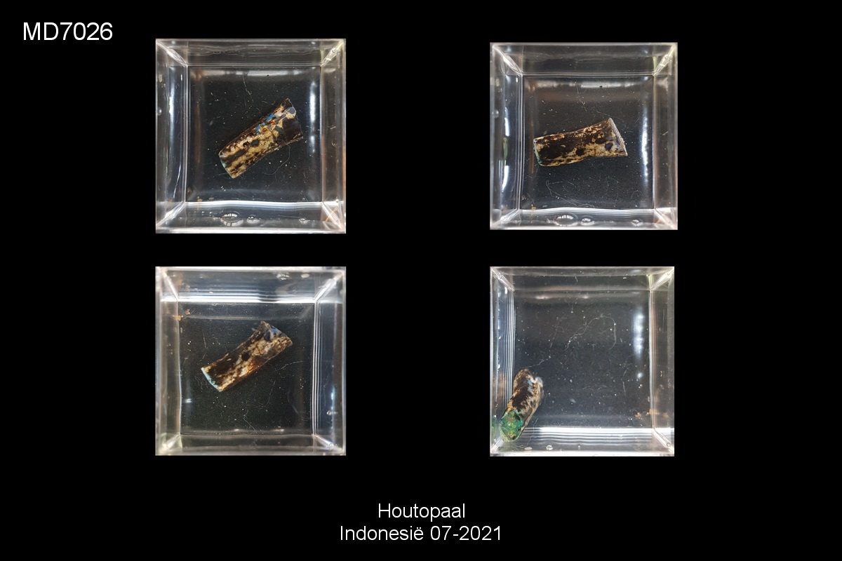 Nog n tiental stukken, waaronder 4 stukjes geopaliseerd hout. De stukjes houtopaal in de micromount doosjes zijn in water gefotografeerd!