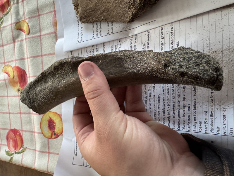 Bij het ophogen van onze achtertuin met zand gewonnen uit de maasvlakte hebben we de bijgevoegde objecten gevonden wat volgens mijn vader en ik sterk op botten lijken.de grotere dunnere is vrij licht en lijkt sponzig . De andere is zwaarder en voelt massiever. Heeft er iemand enig idee wat het kan zijn?