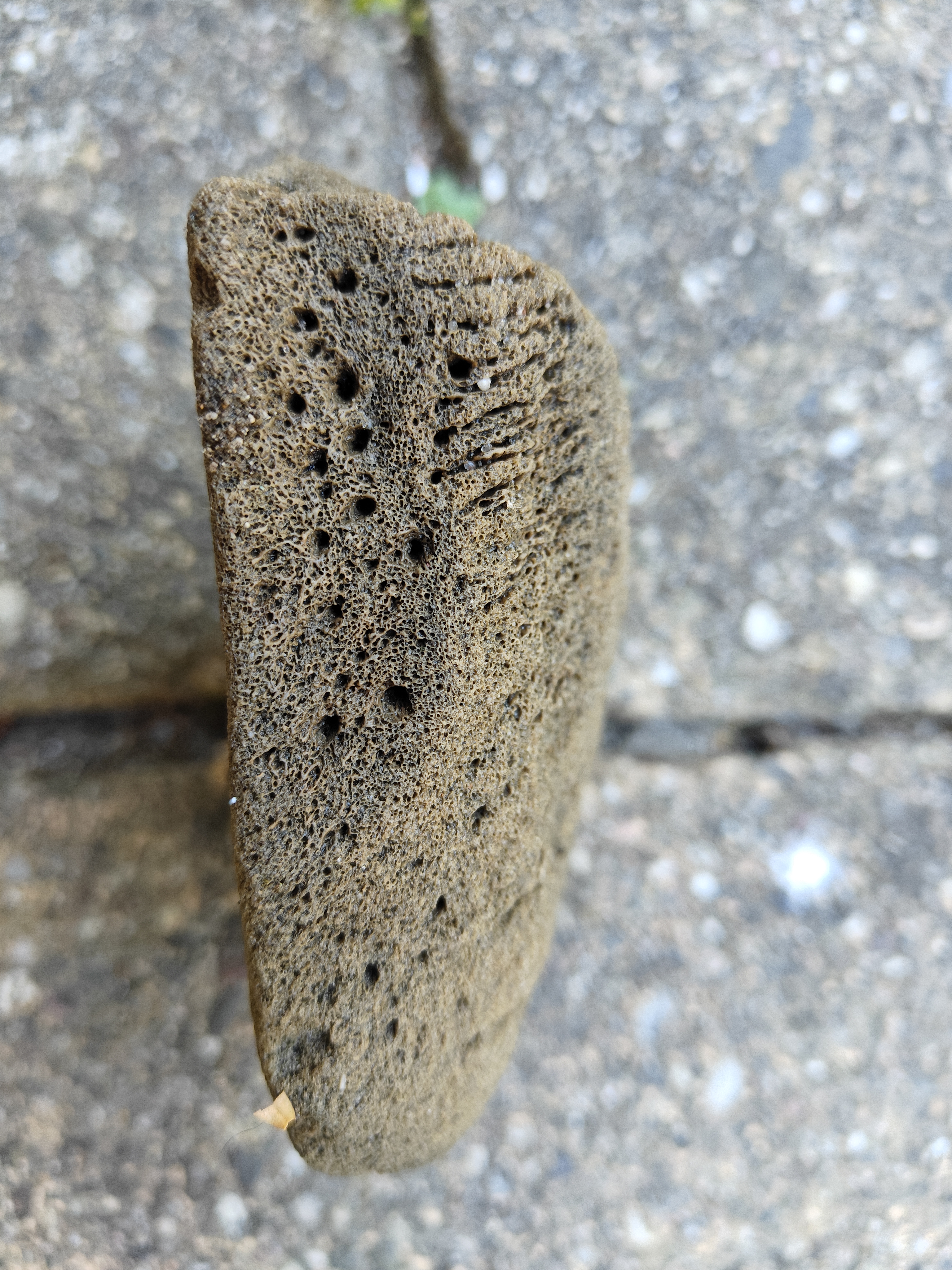 Het ziet er spongieus (dier) uit en de zuiltjes (geologisch) aan de zijkant zijn opvallend.