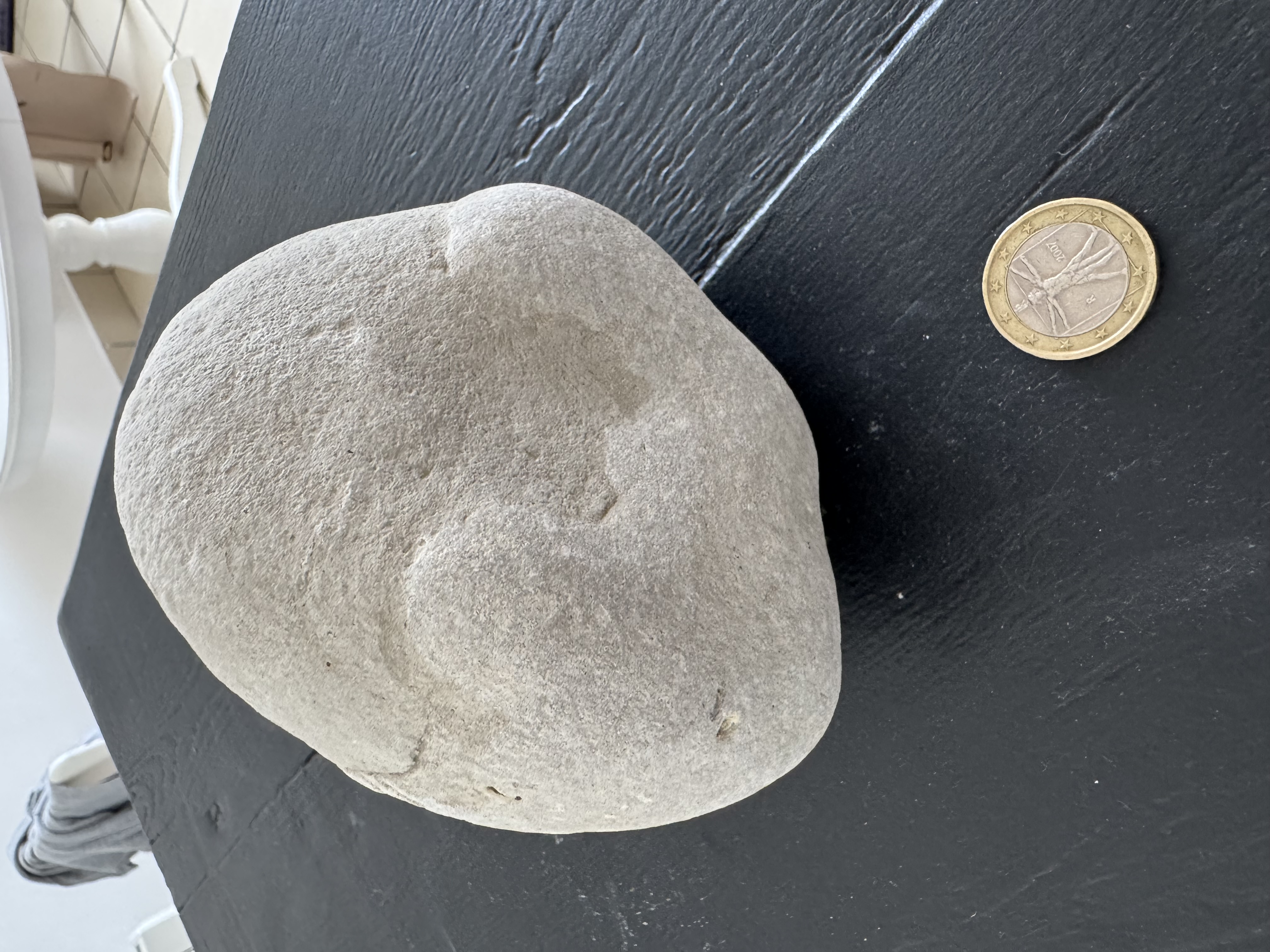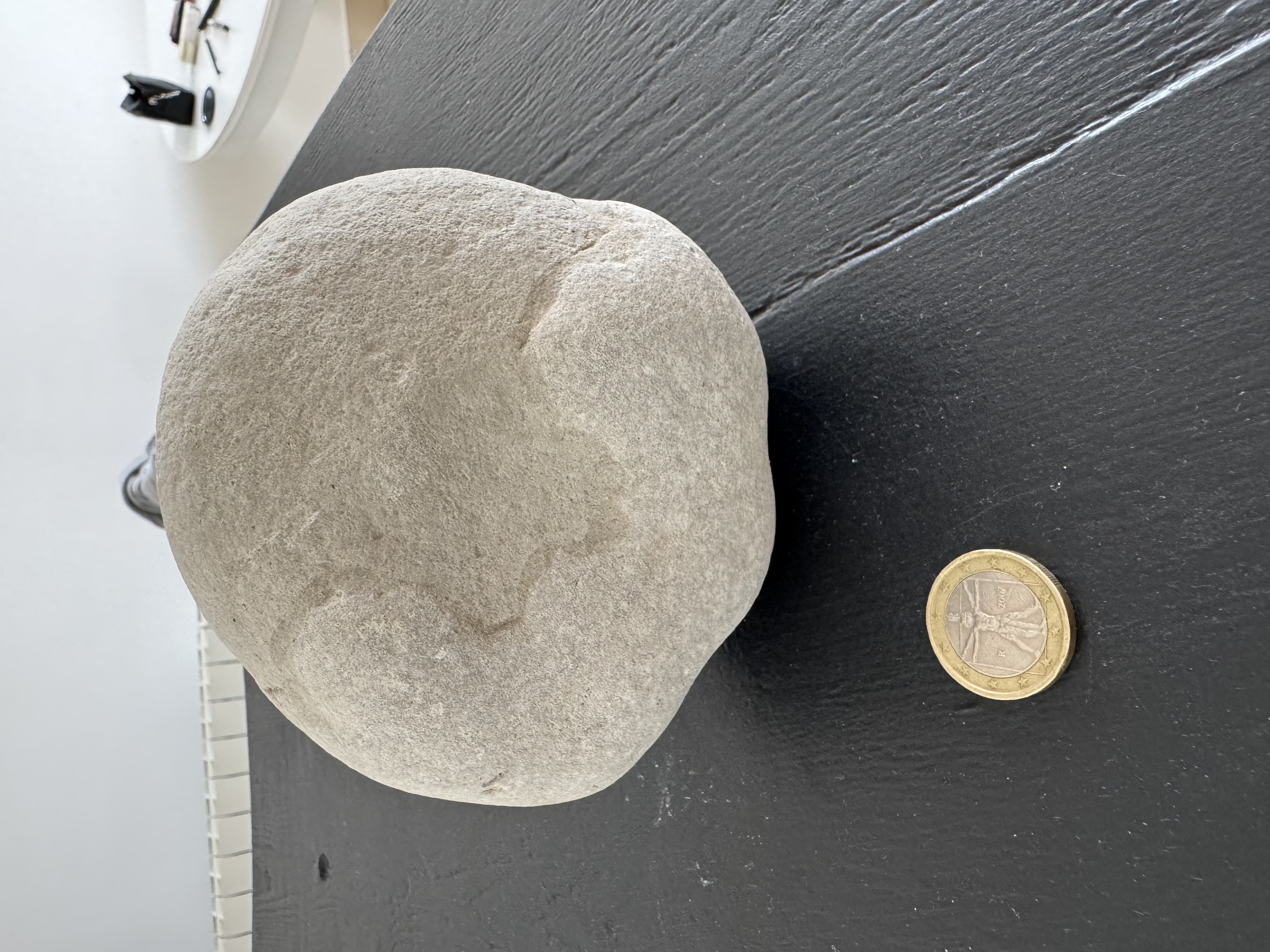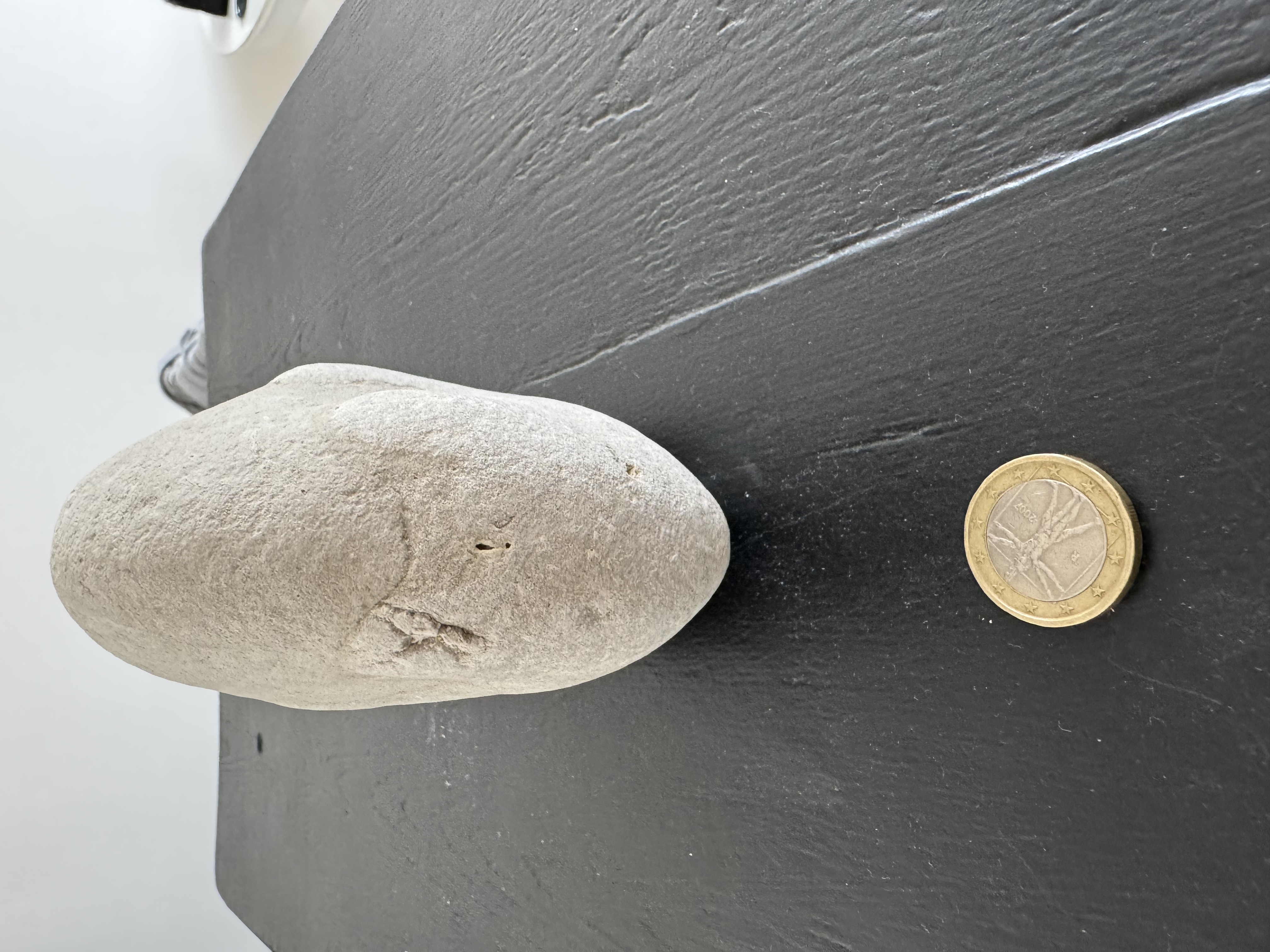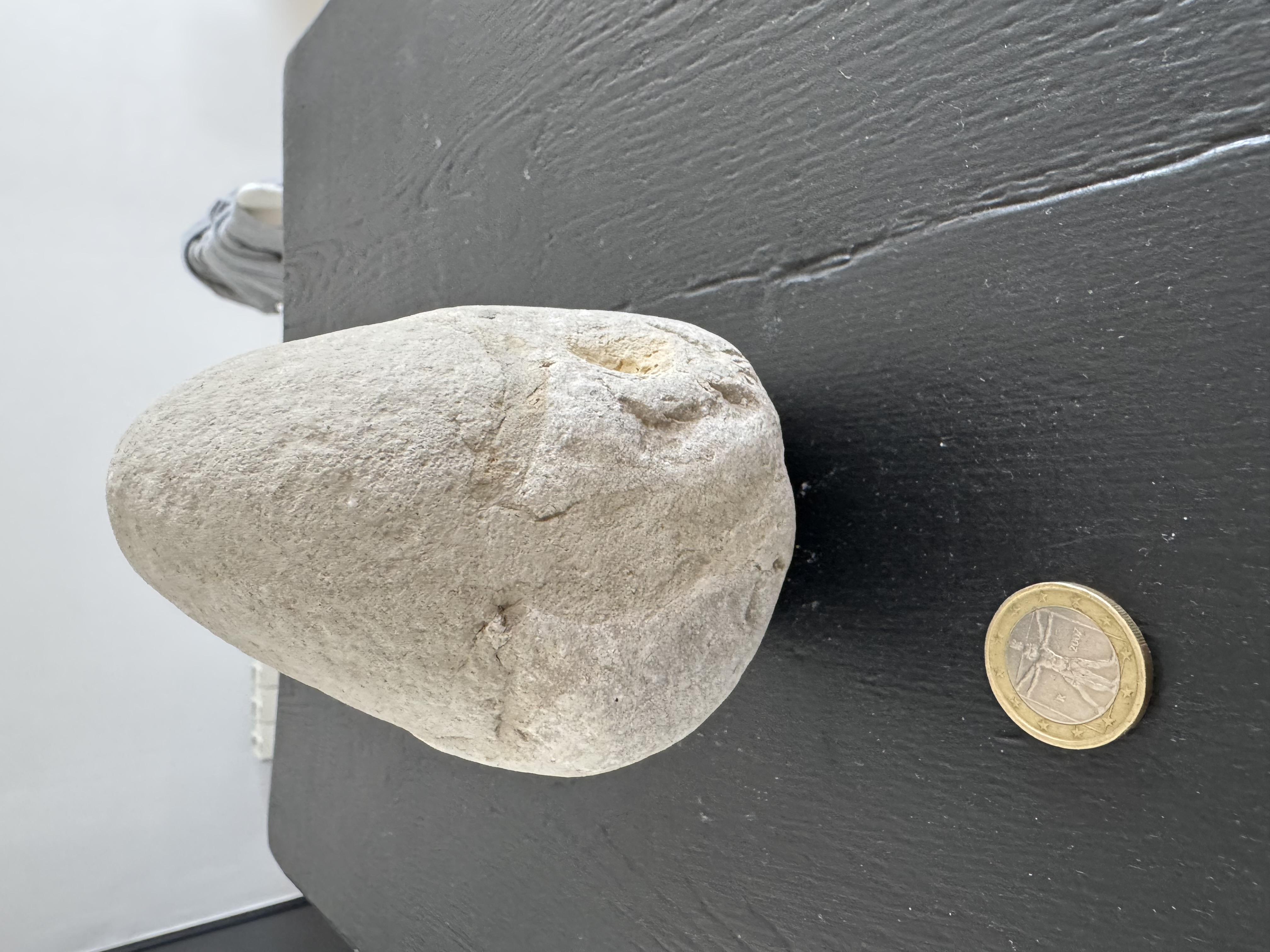 Waarom ik wel vermoed dat het een fossiel is, is omdat het verdikte onderste deel er nagenoeg symmetrisch uitziet. Maar nogmaals: geen idee wat het is.