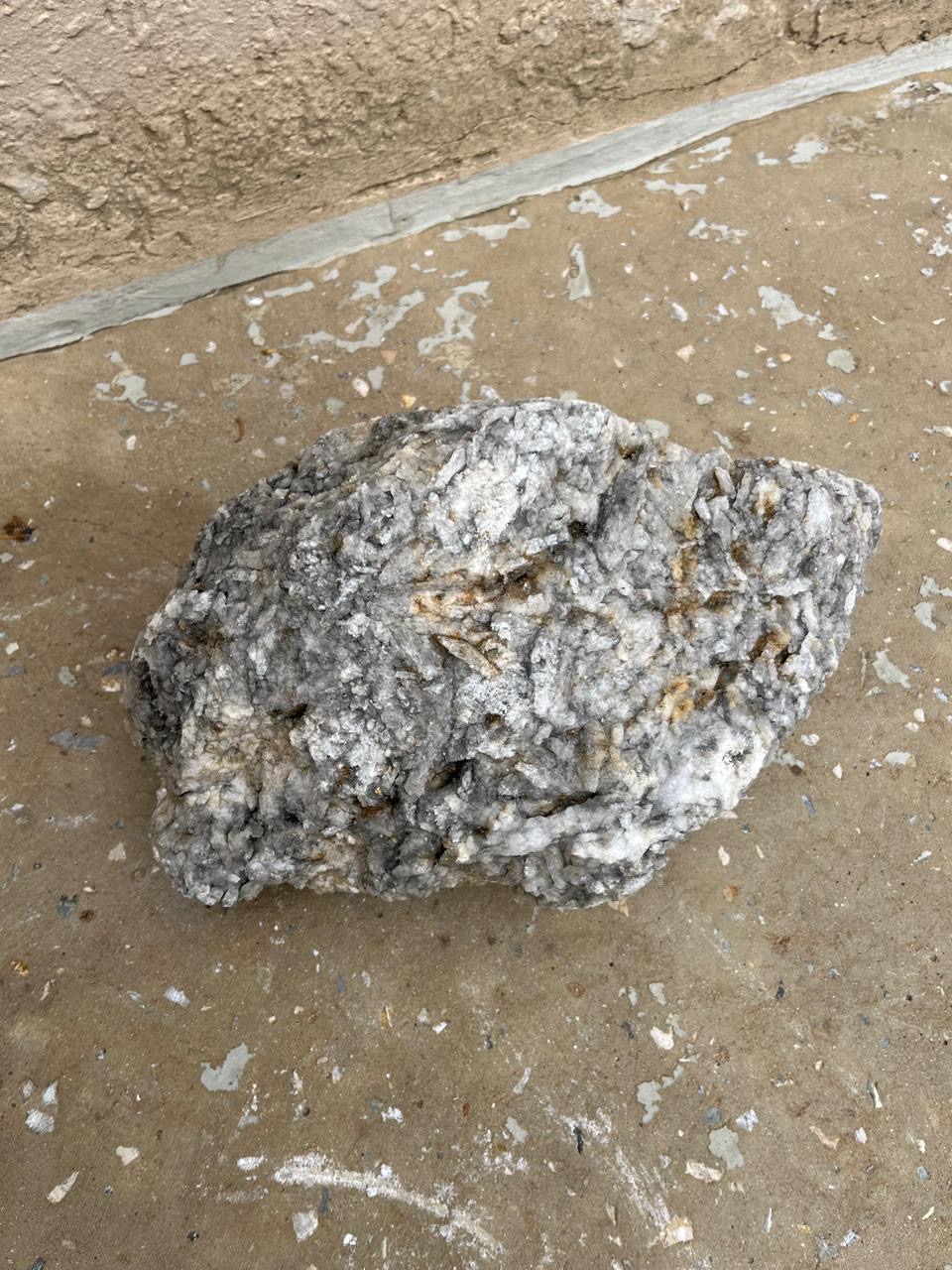 Jij schrijft dat de steen groot en zwaar is, maar wij hebben geen idee hoe groot en hoe zwaar. In principe is elke steen tamelijk zwaar. Is jouw steen zwaarder dan een 'normale' steen van die afmetingen? Je foto's helpen helaas ook niet echt om te bepalen wat het is.