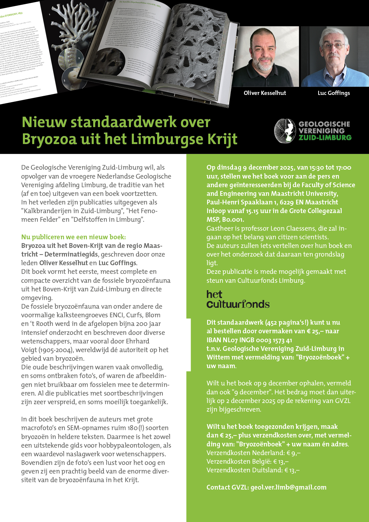 Dit boek wordt uitgegeven door de GVZL (Geologische Vereniging Zuid-Limburg) en de boekvoorstelling zal plaats vinden in de grote aula van de Universiteit Maastricht op 9 december.