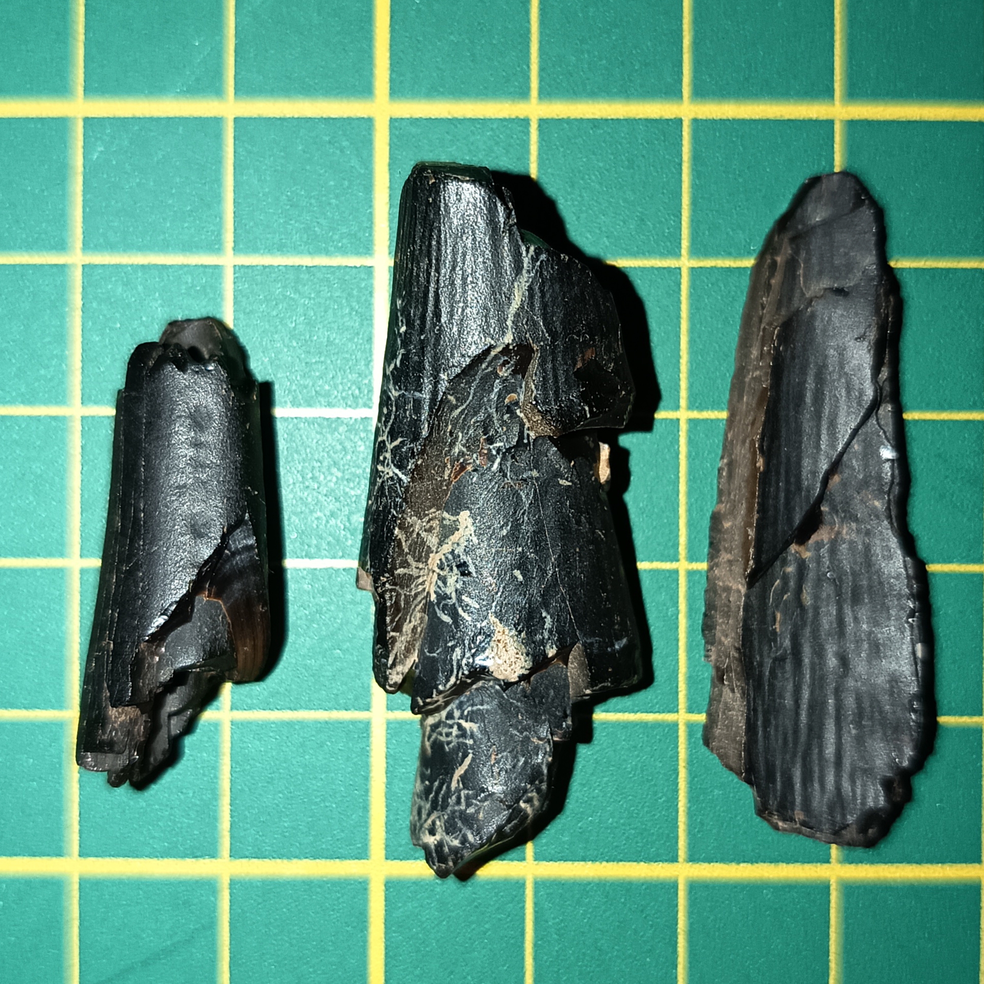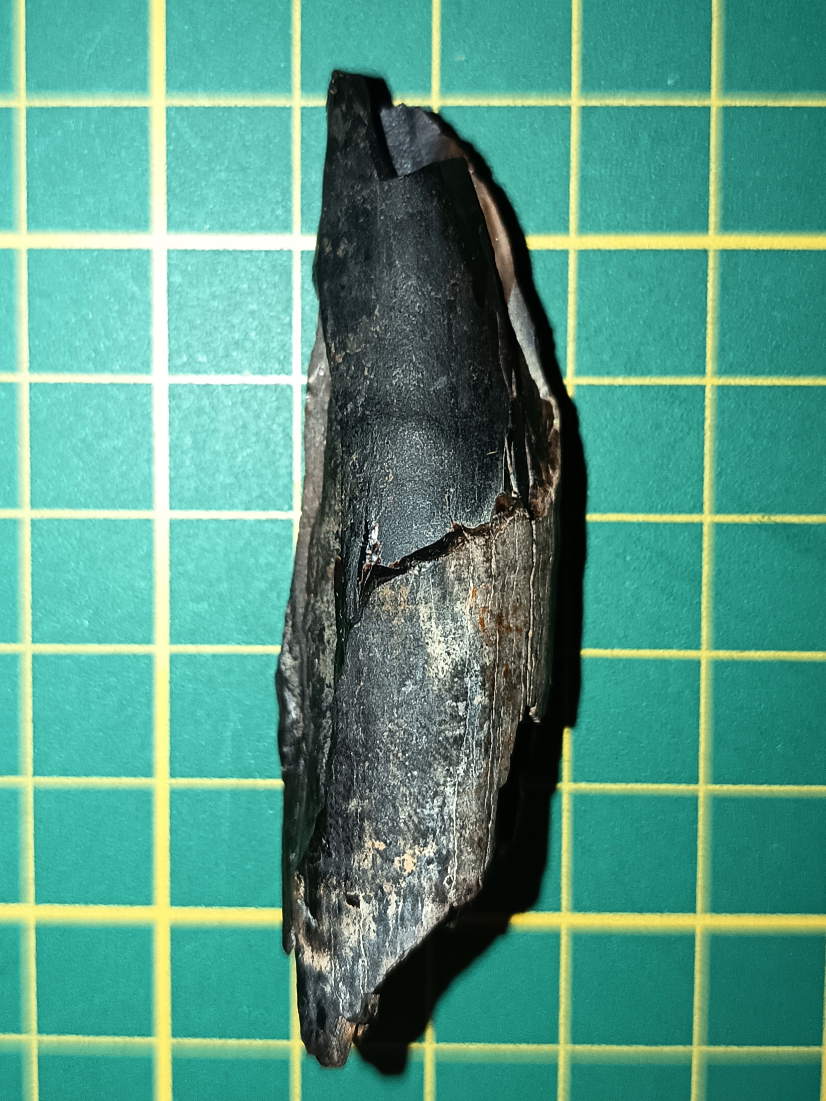 Zwaardvis heb ik niet aan gedacht. Het enige fossiel dat ik daarvan heb is hoekiger, volgens mij niet gelaagd en haast houtachtig.