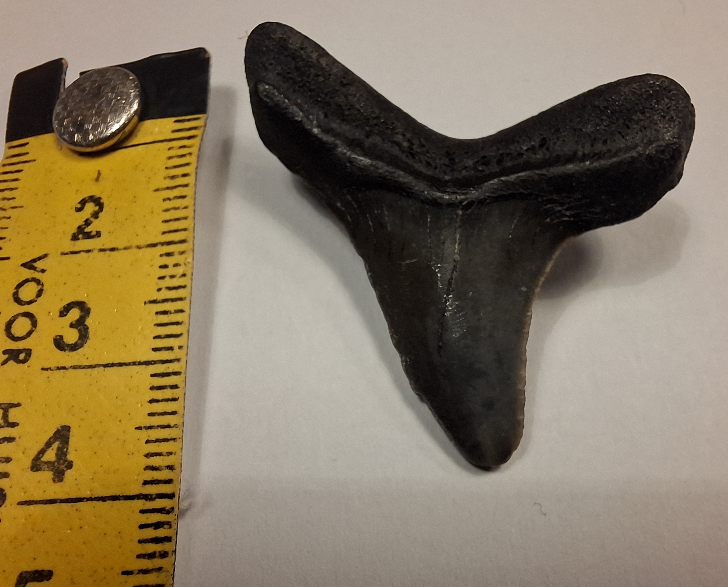 Ik heb deze heel lang geleden gevonden op het strand van Cadzand. Destijds nam ik van vakantie vaak een emmertje haaientanden mee, maar waar die allemaal gebleven zijn weet ik niet. Deze vond ik toen ik de lego van mijn jongste zoon aan het sorteren was.