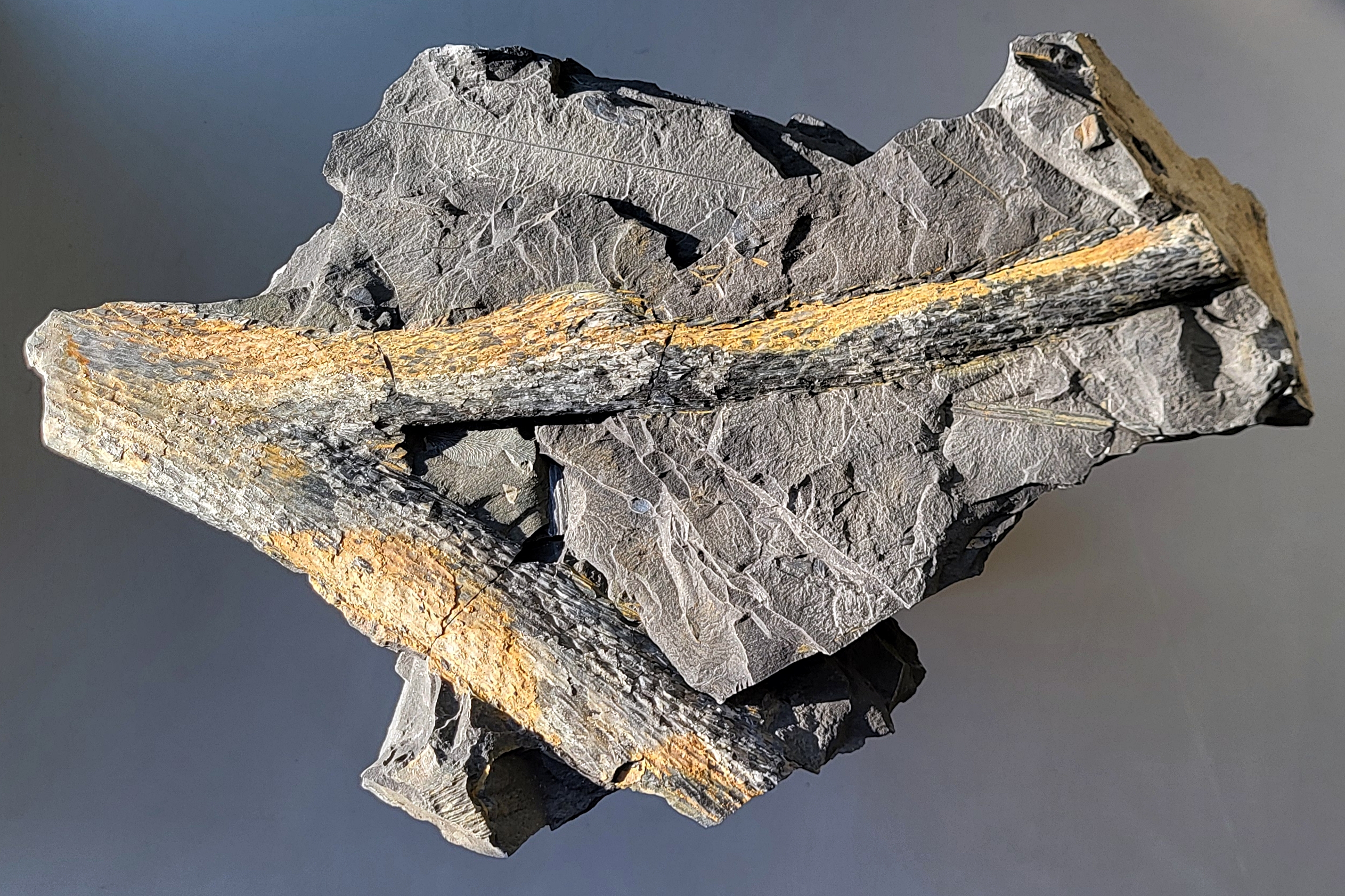 En een artistiek vormgegeven steen met tak van Lepidodendron: