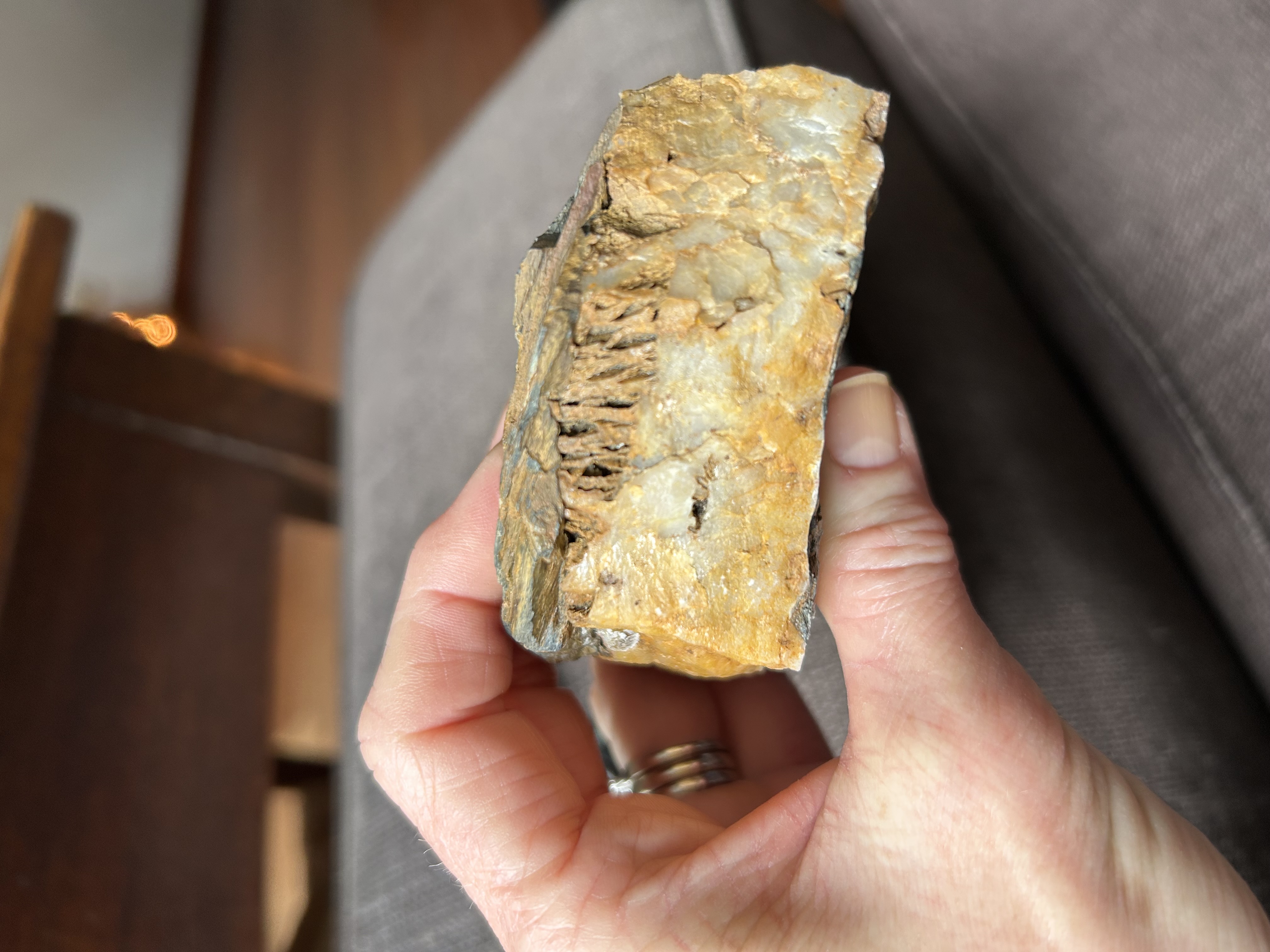 Bij een tekort aan kwarts bleven in die scheuren open ruimtes achter, zoals in jouw steen.