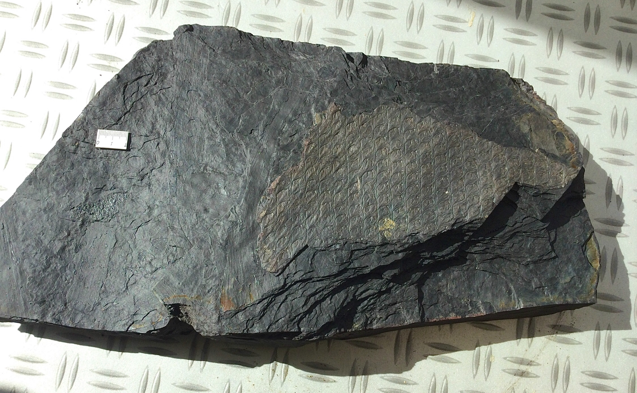 2. Een enorme plaat met een fragment van Lepidodendron aculeatum. Van de storthoop van Brunssum.