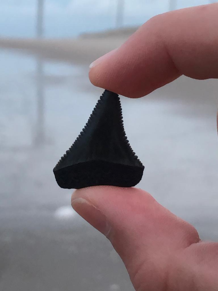 Een tand van een witte haai gevonden op de mv2