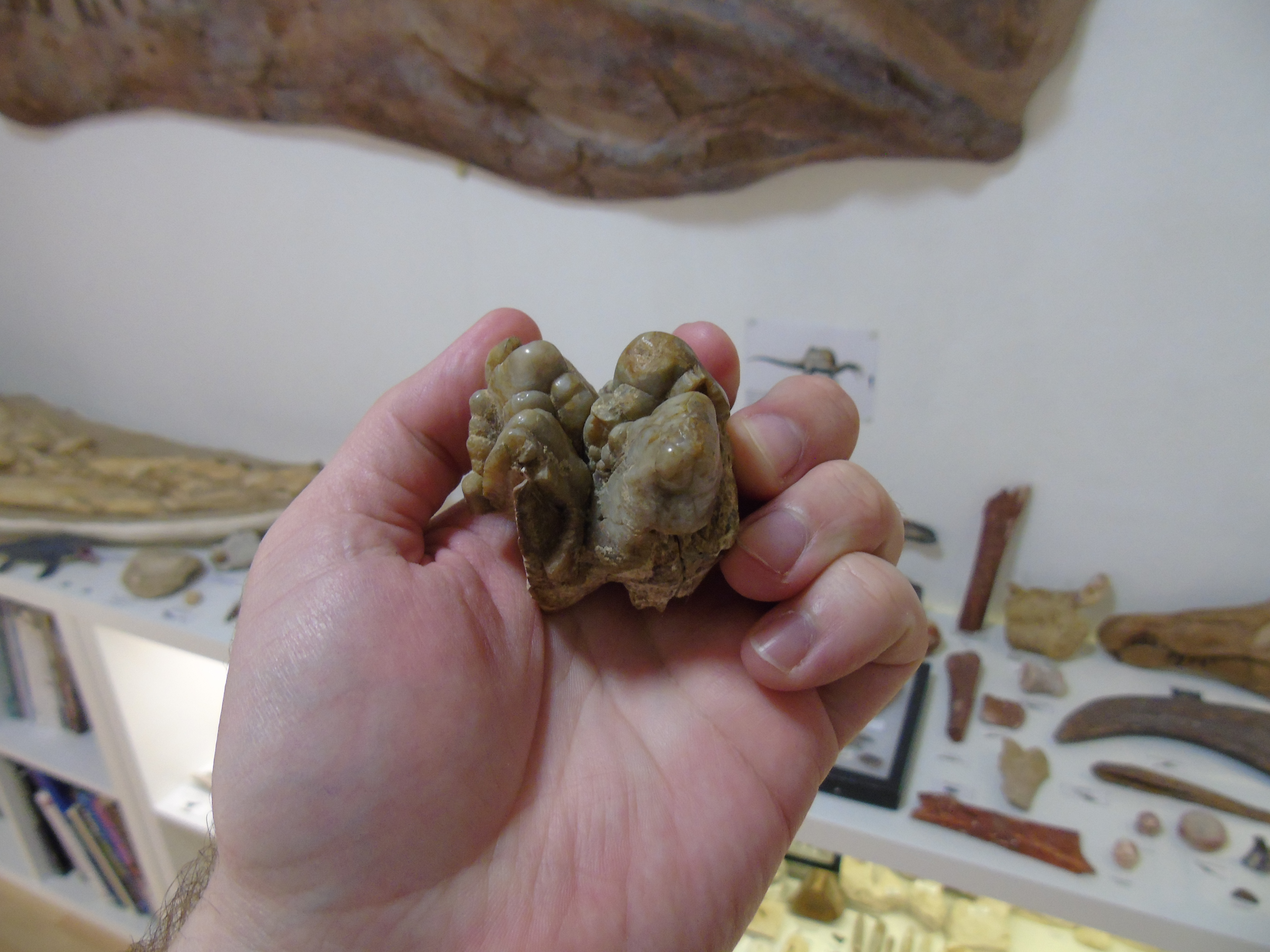 Subhyracodon occidentalis kiezen gevonden in de White River Groep, Brule Formatie, Fall River County, South Dakota, USA - Oligoceen, Rupeliaan, 33 - 30 mya
