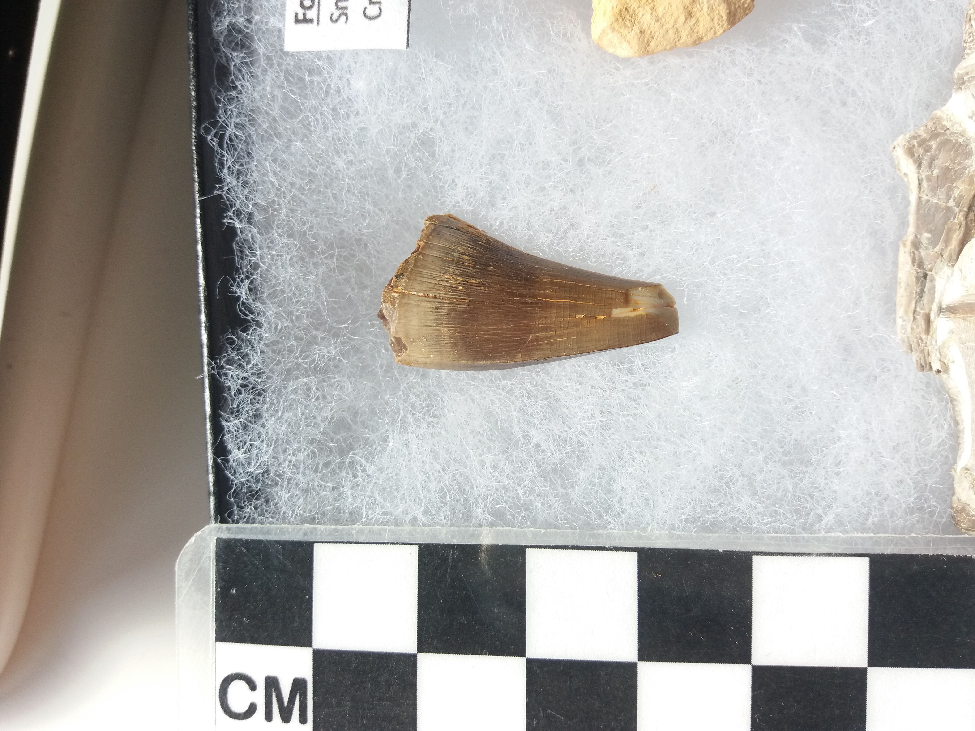 Pluridens serpentis tand gevonden in het Ouled Abdoun Basin, Khouribga, Marokko - Krijt, Maastrichtiaan, 70 mya