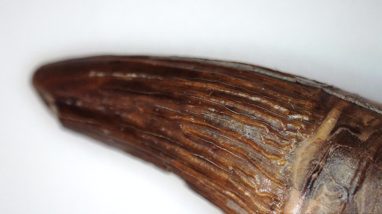Het blijft echter pielen - en al helemaal met de beperkte beeldhoek (kleine reptielentanden, zoals van plesiosauriërs of thalattosauriërs, passen bijvoorbeeld al niet echt in beeld) en erg gerichte focus (zelf met een klein tandje kan maar een klein deel scherpgesteld worden). Misschien dat ik er de verkeerde verwachtingen van had en eigenlijk beter met een kleine lichttent en goede macrolens af ben, maar ik vond het gemak ik gebruik en wat je uiteindelijk op de resulterende foto's weet te leggen wat tegenvallen, ook al valt de kwaliteit van de foto's zelf me alleszins mee. Wel is ook belichting een probleem, omdat wanneer je met de lens te dicht op je object zit deze te veel kan reflecteren (in welk geval je de lichtsterkte overigens wel kunt terugschakelen), terwijl als de afstand tot je object daarentegen te groot is, er weer niet voldoende licht is of je juist lichtvlekken van de afzonderlijke lichtjes in je foto ziet. Dat gezegd hebbende, hier wat foto's van pliosaurustanden: