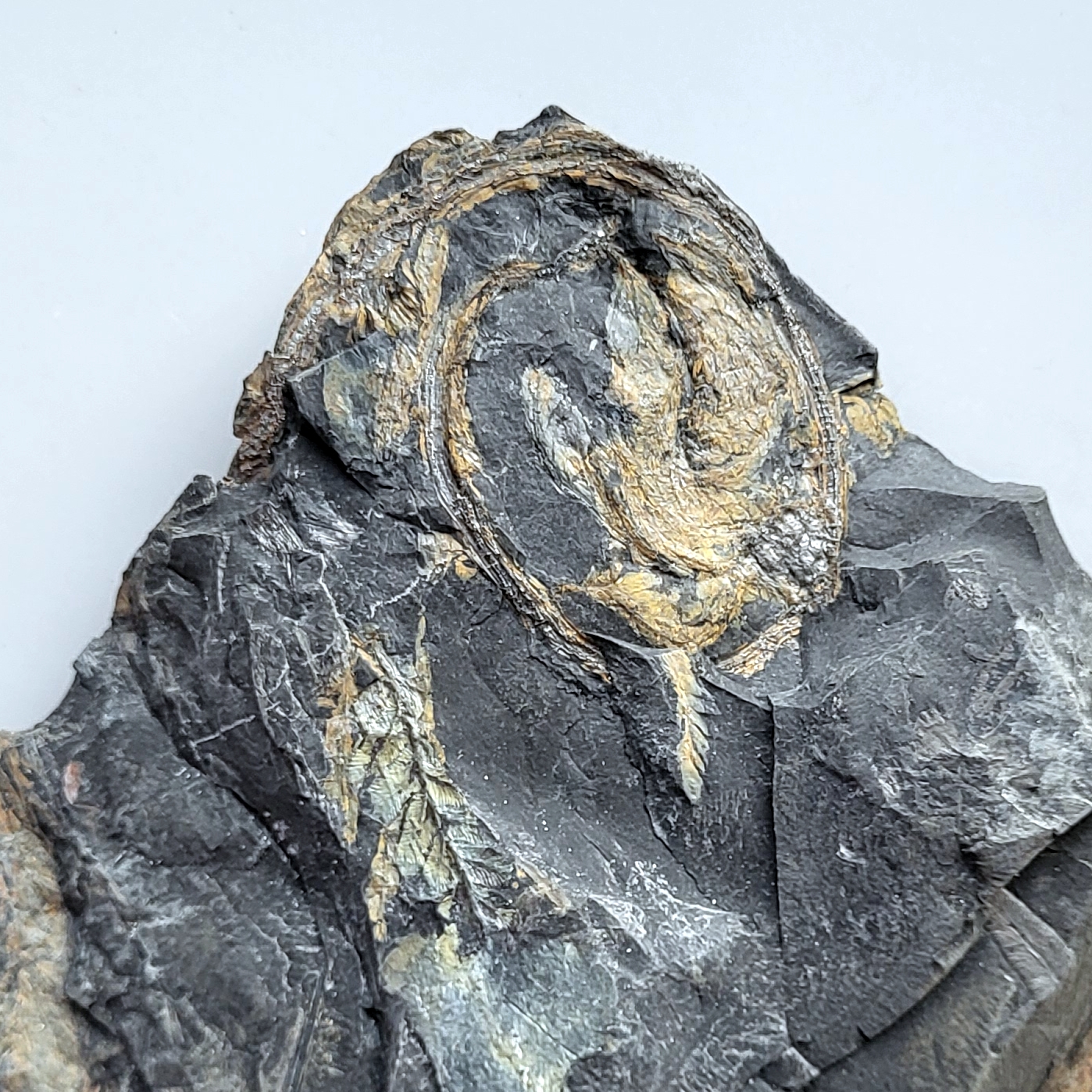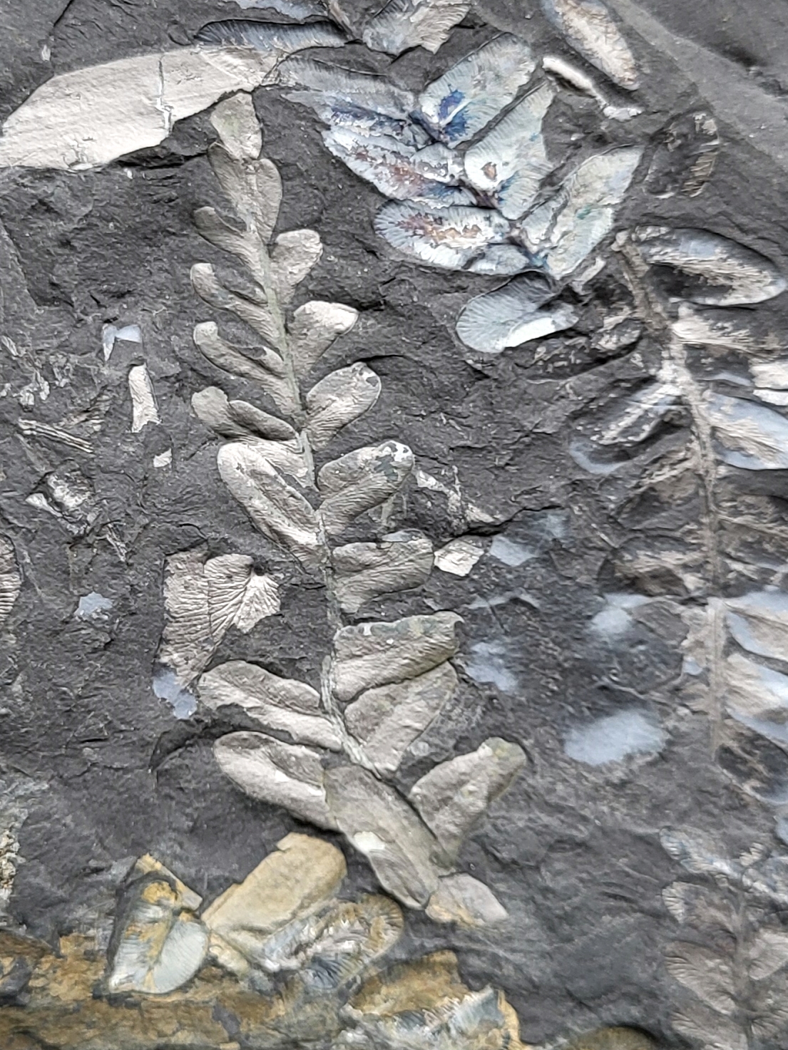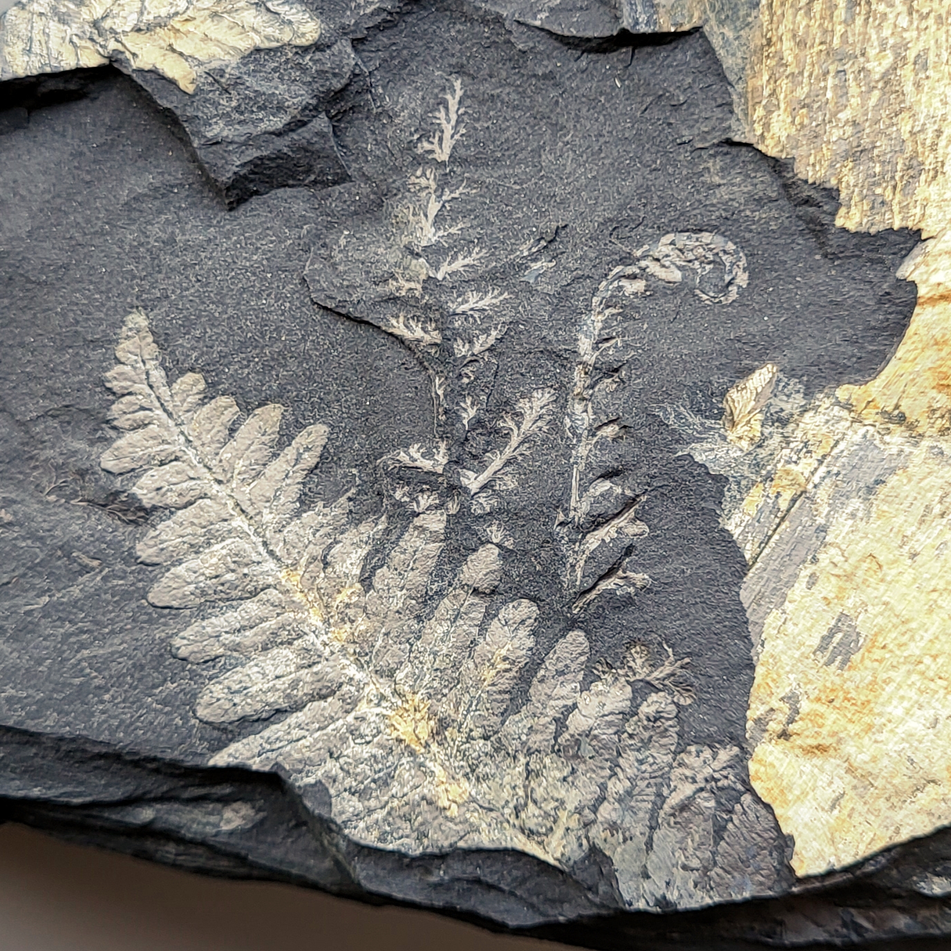 Onderstaande foto's tonen voorbeelden van Spiropteris sp., een vormgenus voor structuren die lijken op varenkrullen. Overigens zal het niet altijd om een echte varen gaan, omdat ook verschillende soorten pteridospermen tijdens de groei opgekrulde bladeren hadden. Biologisch gezien is het dus een beetje een "vergaarbakgeslacht". Bij de laatste twee voorbeelden hieronder gaat het om krullen van echte varens (kun je zien aan het ontrolde loof in associatie), maar bij de eerste weet ik het niet.