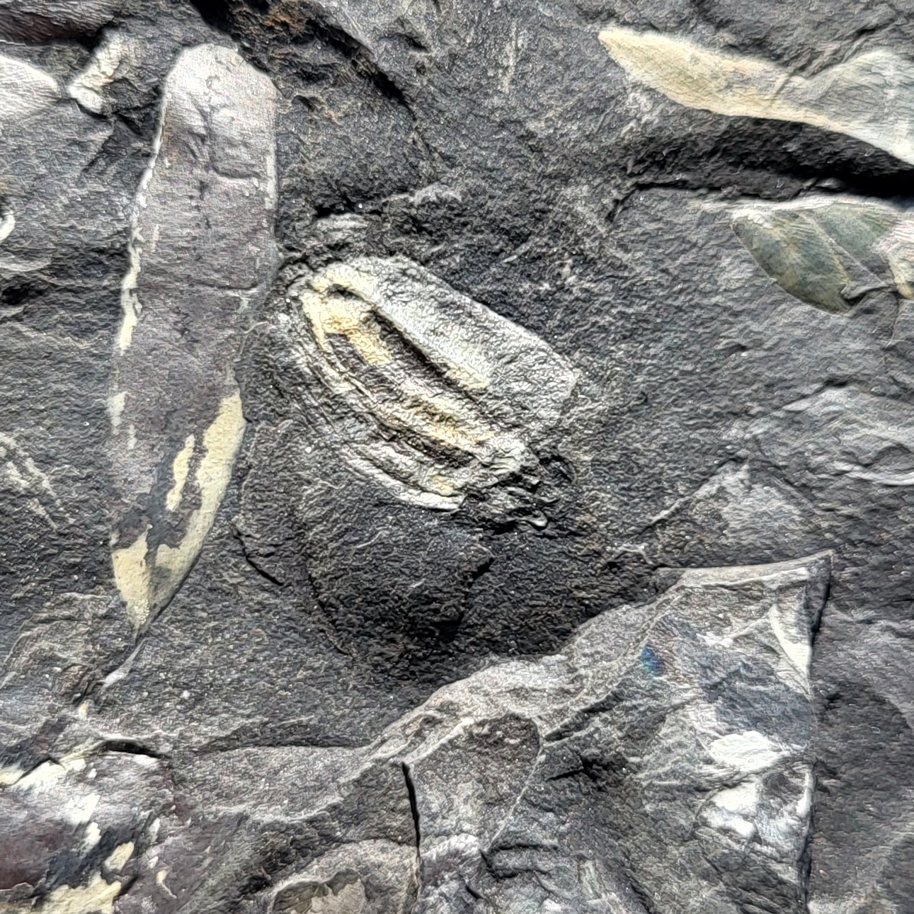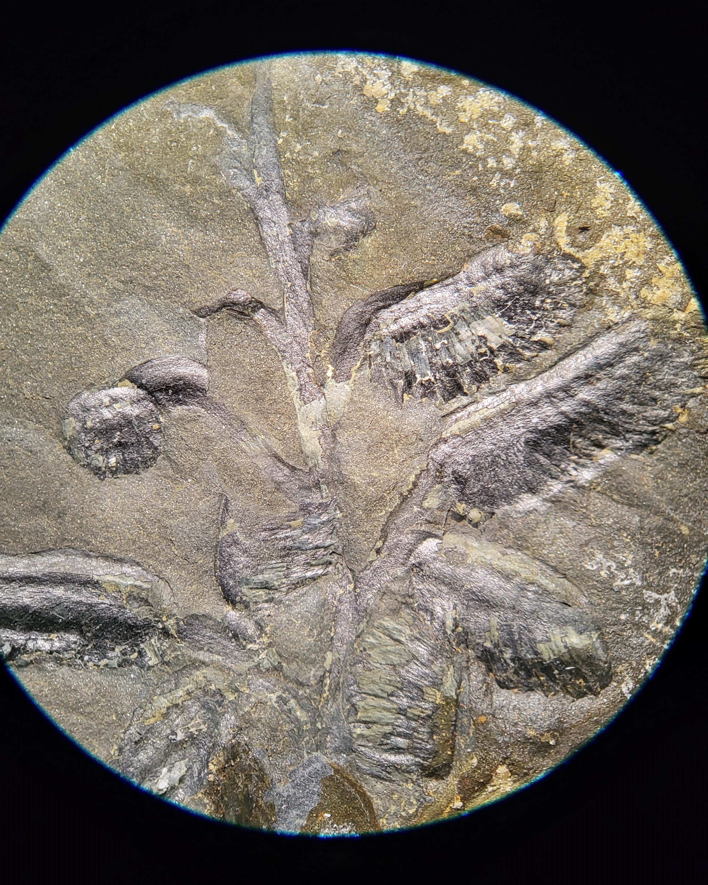 Helaas is het niet mogelijk om bestaande posts aan te passen, want Crossotheca crepinii Zeiller 1883 is hier al te vinden in deze overzichtsdraad. Echter wilde ik deze detailfoto toch toevoegen. Deze "kleine borsteltjes" zijn de (mannelijke) pollenorganen van pteridospermen uit de Lyginpopteridales orde. De "haren" van deze borstels zijn (micro)sporangiën, structuren waarin stuifmeel werd gevormd. Voor meer info, zie de website van Hans Steur, alsook een van zijn artikels in de Grondboor & Hamer.