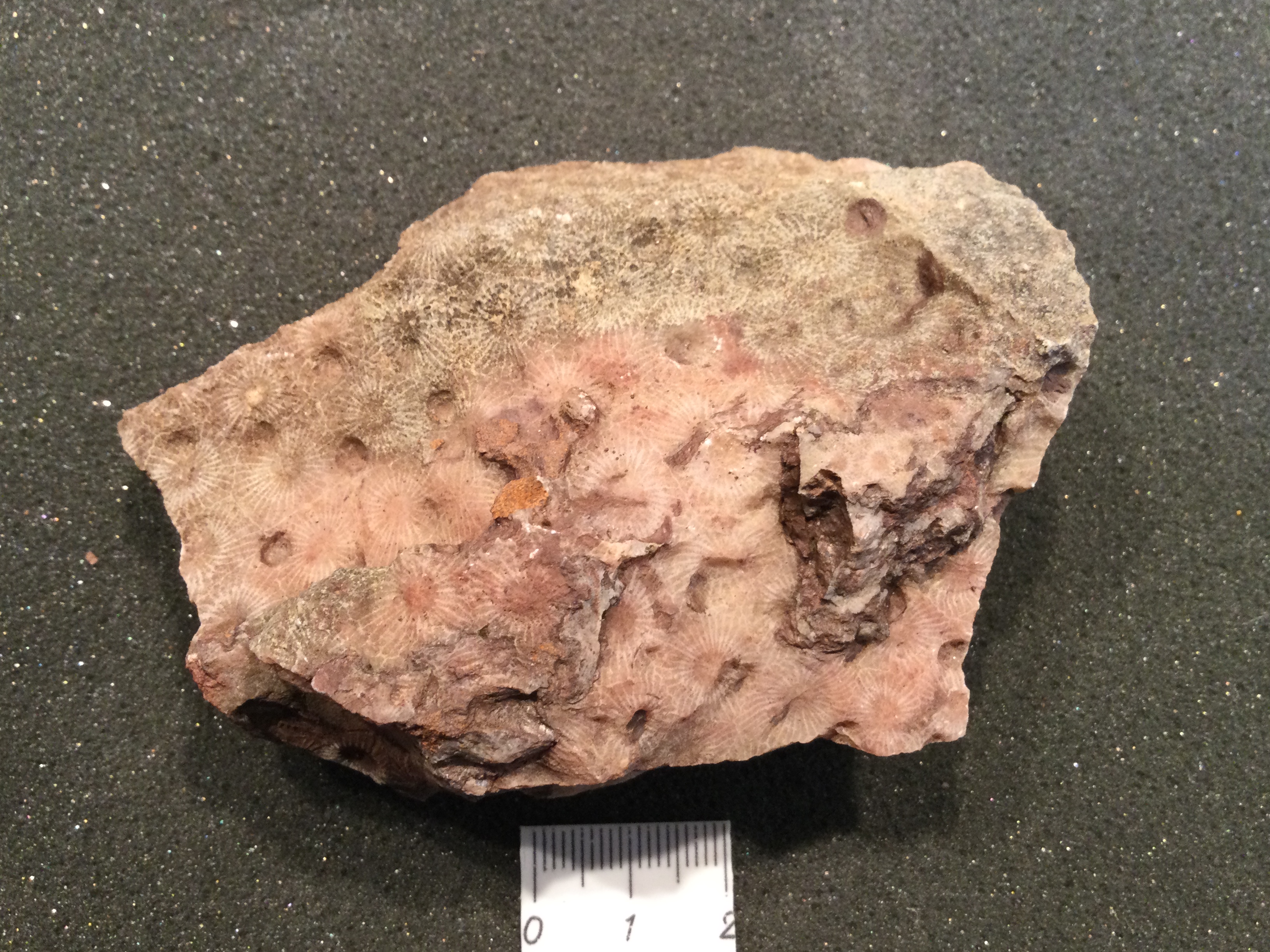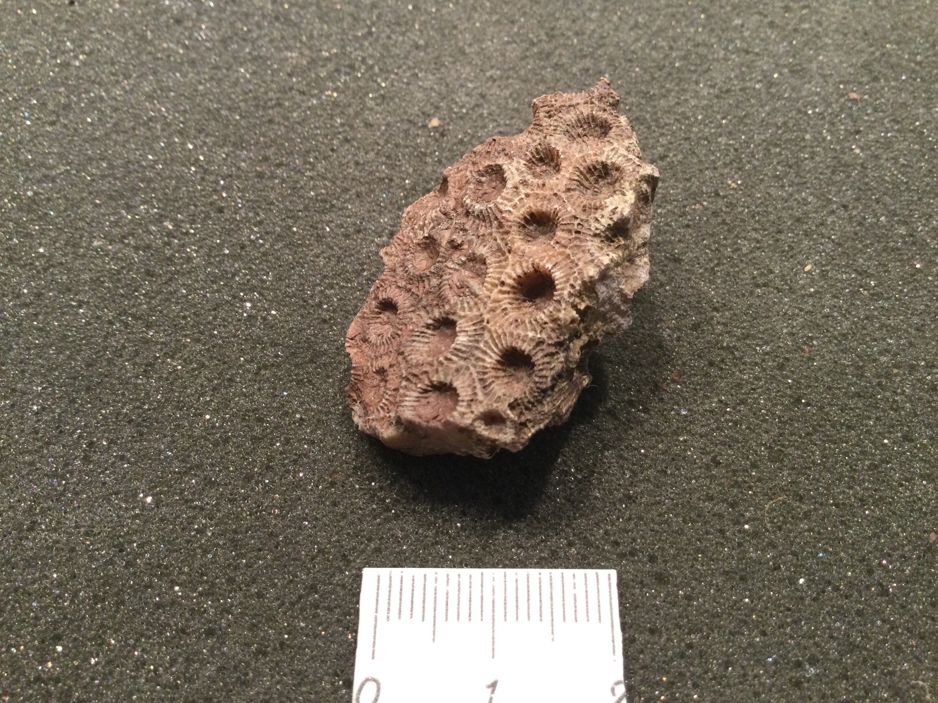 3. Koraal in rode marmer uit Beauchâteau. Een soort Hexagonaria.