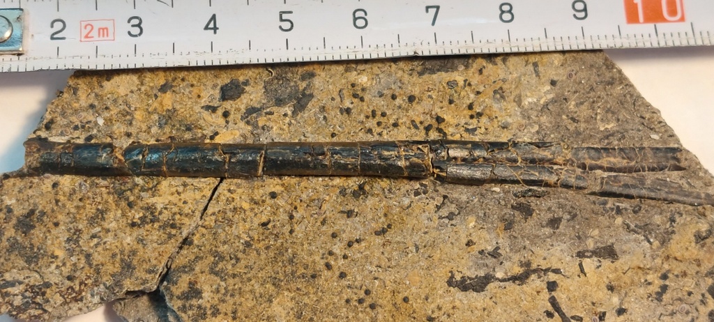 Een mooie laatste staartwervel val een Protosphyraena uit cap blanc nez. Het zat nog soort van in de klif maar in een uitstulping van 1,5 m hoog en 4 meter uit de klif. Hierdoor heb ik ook de formatie vrij zeker kunnen bepalen. Deze is afkomstig uit de formatie van Petit blanc nez. Gevonden op 08-01-2022